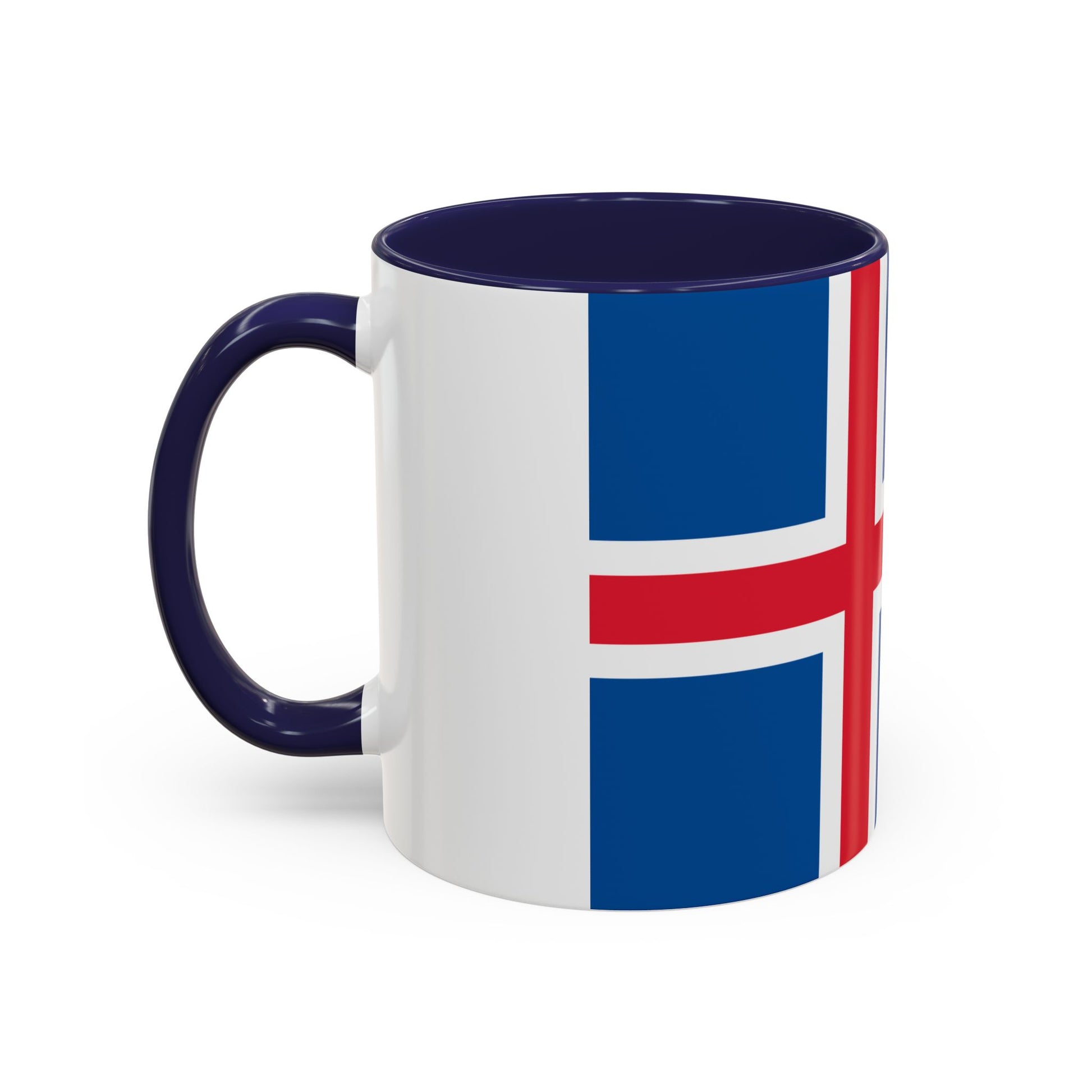 The flag of Iceland features a blue field with a red cross outlined in white. Blue represents the Atlantic Ocean surrounding the country, white symbolizes the snow and glaciers, and red reflects the island’s volcanic fires and the courage of its people. The Iceland Mug lets you celebrate these elements of Icelandic heritage with every sip.