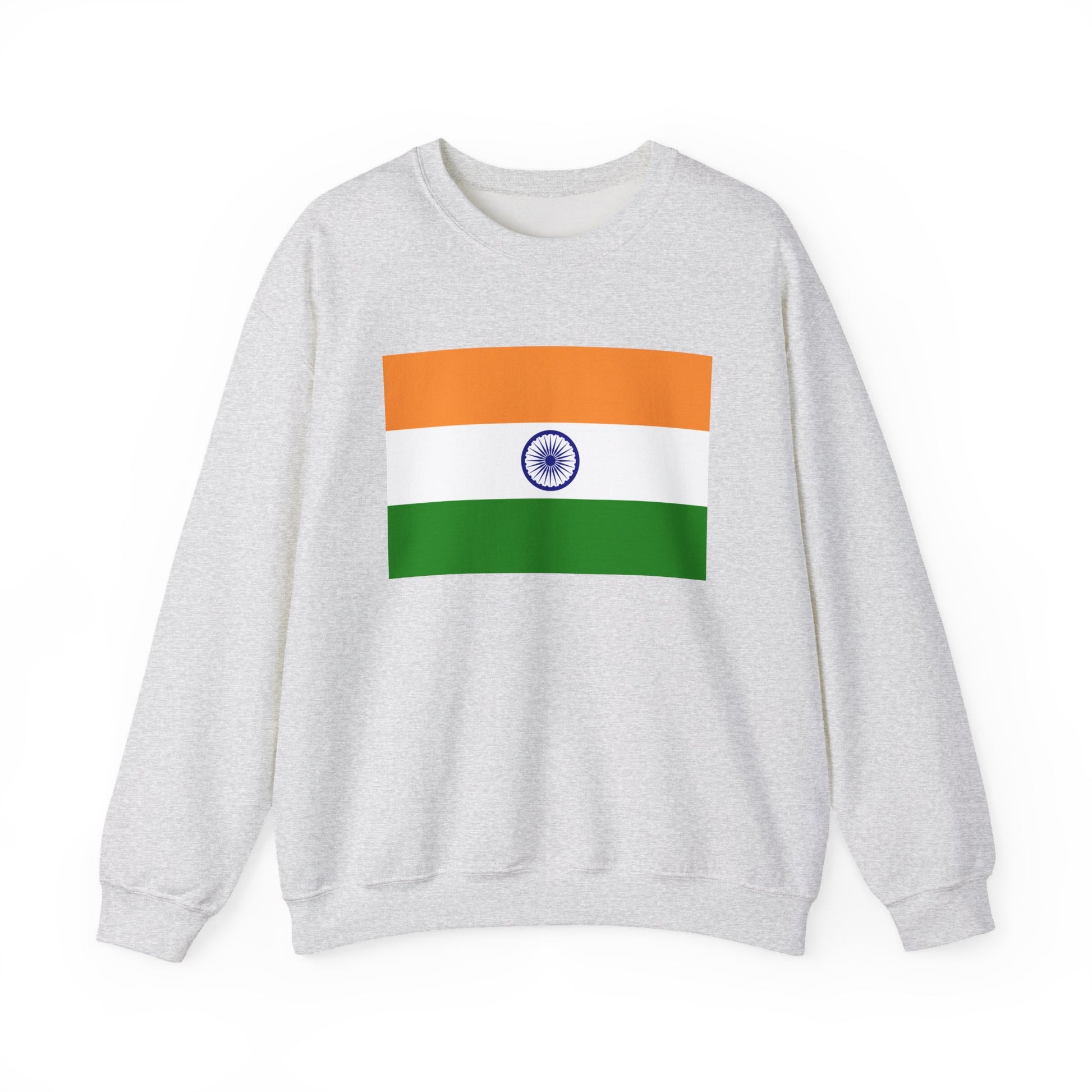 The design of the India Flag Sweatshirt reflects the spirit of the Indian flag. The saffron stripe stands for courage and sacrifice, the white stripe represents peace and truth, and the green stripe symbolizes growth and prosperity. At the center, the Ashoka Chakra, a 24-spoke navy wheel, embodies justice, motion, and the eternal cycle of progress. Together, these colors and symbols tell the story of a nation defined by unity and resilience.