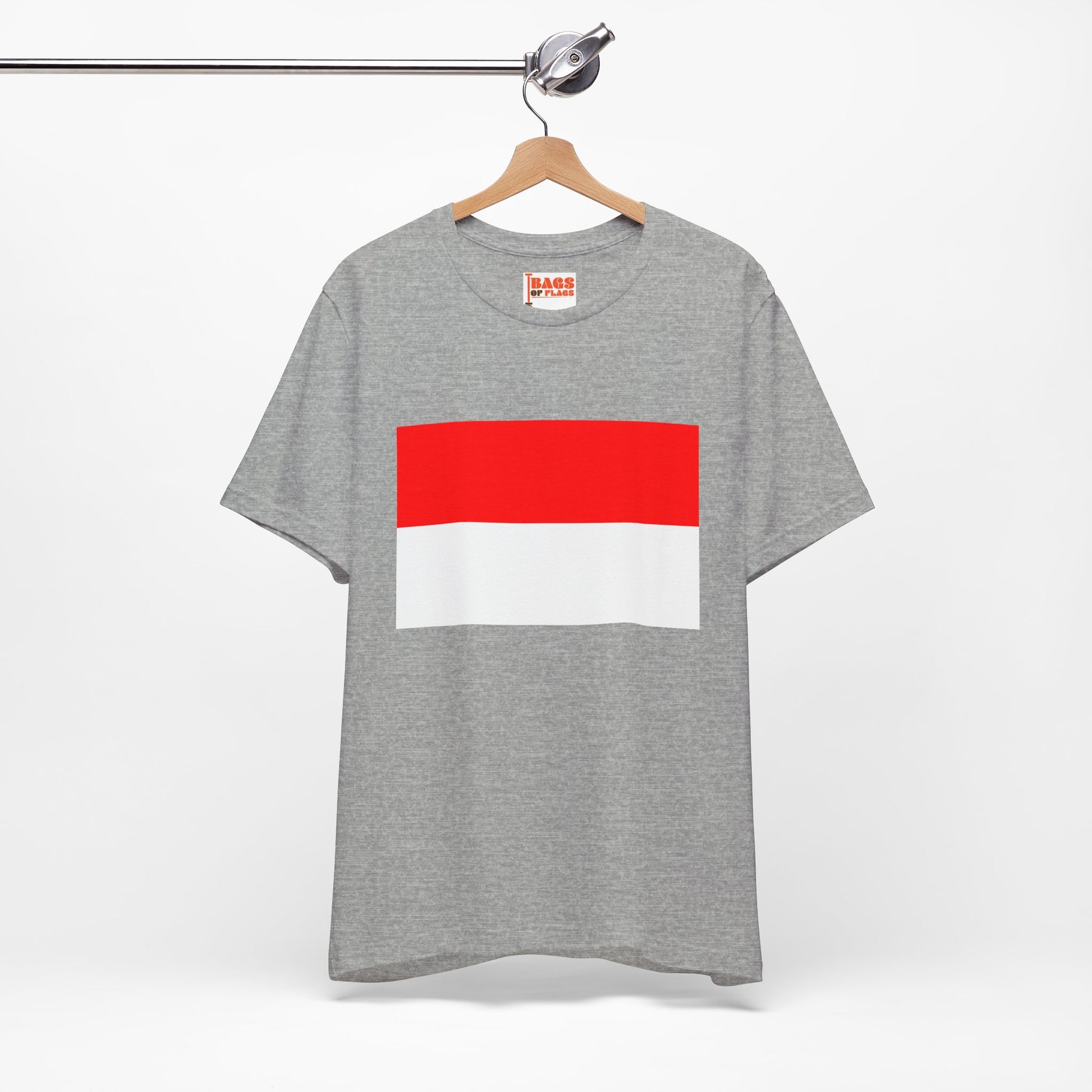 Display your pride for the Republic of Indonesia with this bold and timeless Indonesia Flag T-shirt. Featuring the simple yet striking red and white bicolor design of the Indonesian national flag, this shirt is a clean and classic way to show your connection to or admiration for the country. Whether you're celebrating your roots, traveling abroad, or cheering for Indonesia on the world stage, this T-shirt makes a proud statement.