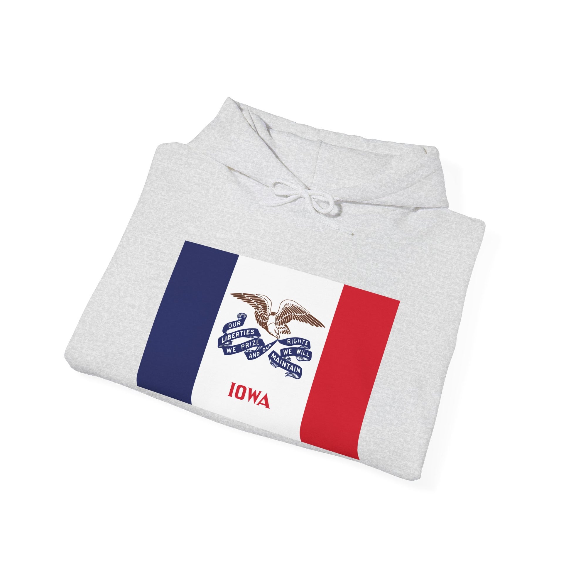 Wrap yourself in the bold spirit of the Hawkeye State with this Iowa Flag Hoodie, a tribute to Iowa’s enduring values of liberty, justice, and patriotism. Featuring a vibrant print of the Iowa state flag, this hoodie brings together comfort, durability, and a touch of Midwestern pride.