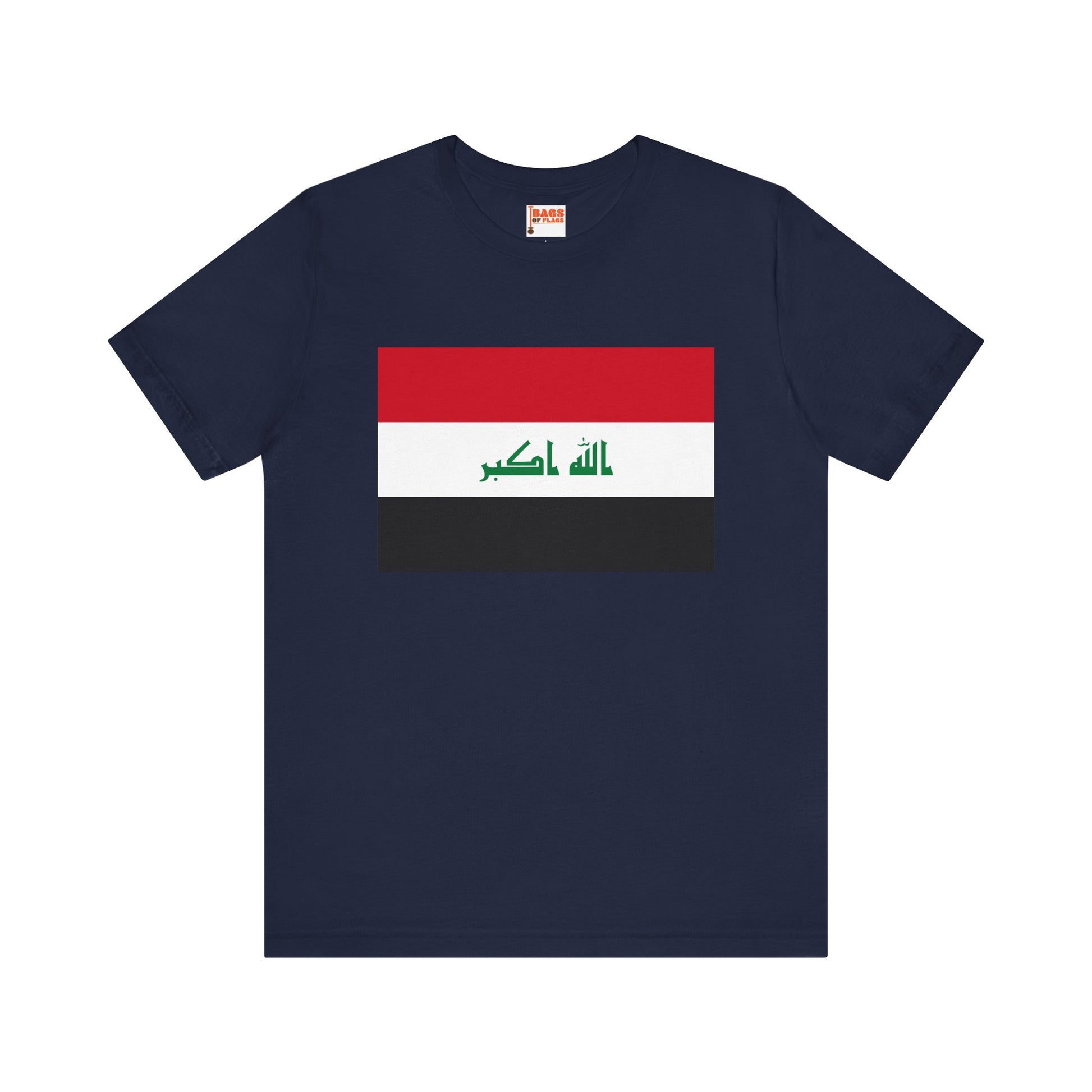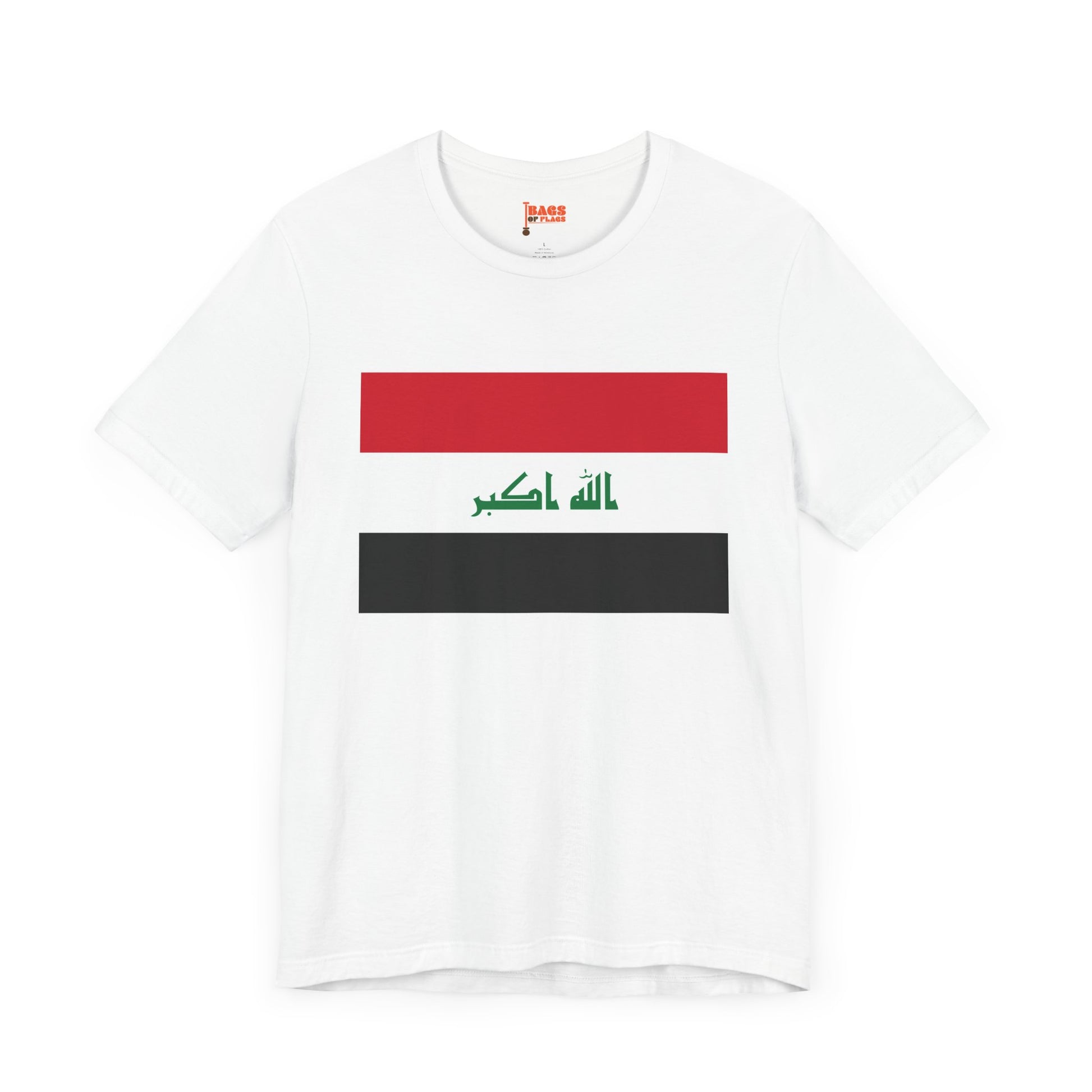 Celebrate your identity with this bold and meaningful Iraq Flag T-shirt. Featuring the unmistakable red, white, and black horizontal stripes and the green Arabic inscription “Allahu Akbar” at the center, this design captures the strength, history, and pride of the Iraqi people. Whether you're honoring your roots, supporting your national team, or simply expressing solidarity, this tee makes a powerful visual statement.