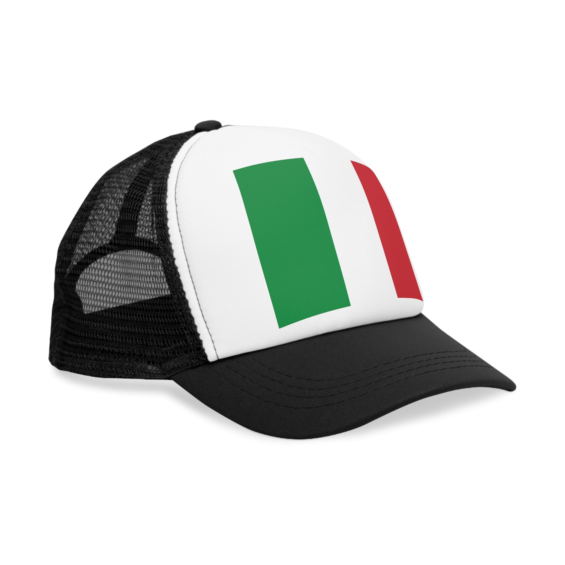 Celebrate Italian heritage and timeless style with the Italy Trucker Cap — a perfect fusion of national pride and casual sophistication. The cap features a clean white front panel displaying a vivid print of the Italian flag, its green, white, and red tricolor standing boldly as a symbol of unity and strength. The black mesh back and curved bill create a balanced, classic look, while ensuring comfort and breathability wherever your day takes you.