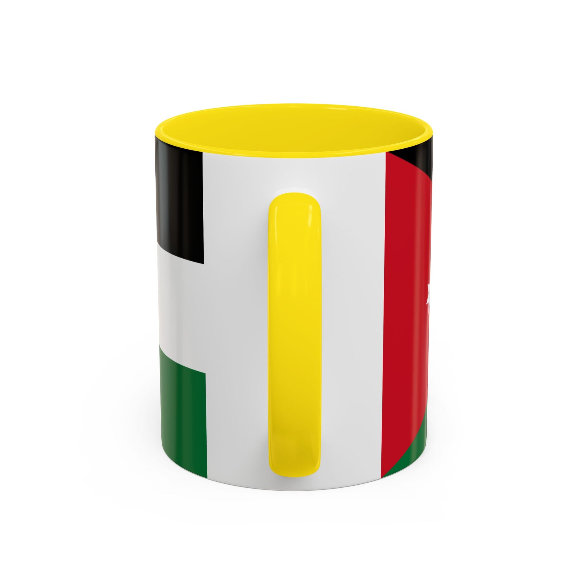 Start your day with a touch of Middle Eastern pride using the Jordan Mug. Made from durable white ceramic with a glossy finish, this mug features the bold colors and emblem of the Jordanian flag, blending meaningful symbolism with everyday practicality. The colorful interior and handle add a modern accent, while the ergonomic C-shaped handle ensures comfort with every sip of coffee, tea, or hot chocolate.