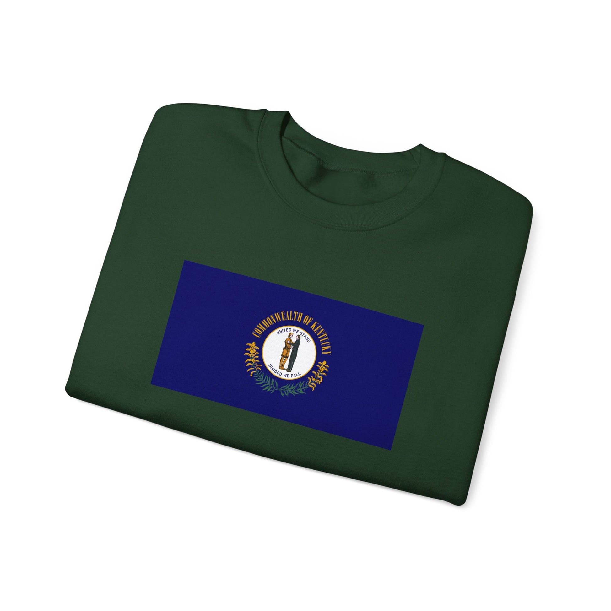 This sweatshirt features a bold design inspired by the Kentucky state flag, proudly displaying the state seal with its famous motto, United We Stand, Divided We Fall. The clean look makes it a versatile piece for Kentuckians and Kentucky fans alike. Designed for long-lasting wear, this sweatshirt is as practical as it is meaningful.
