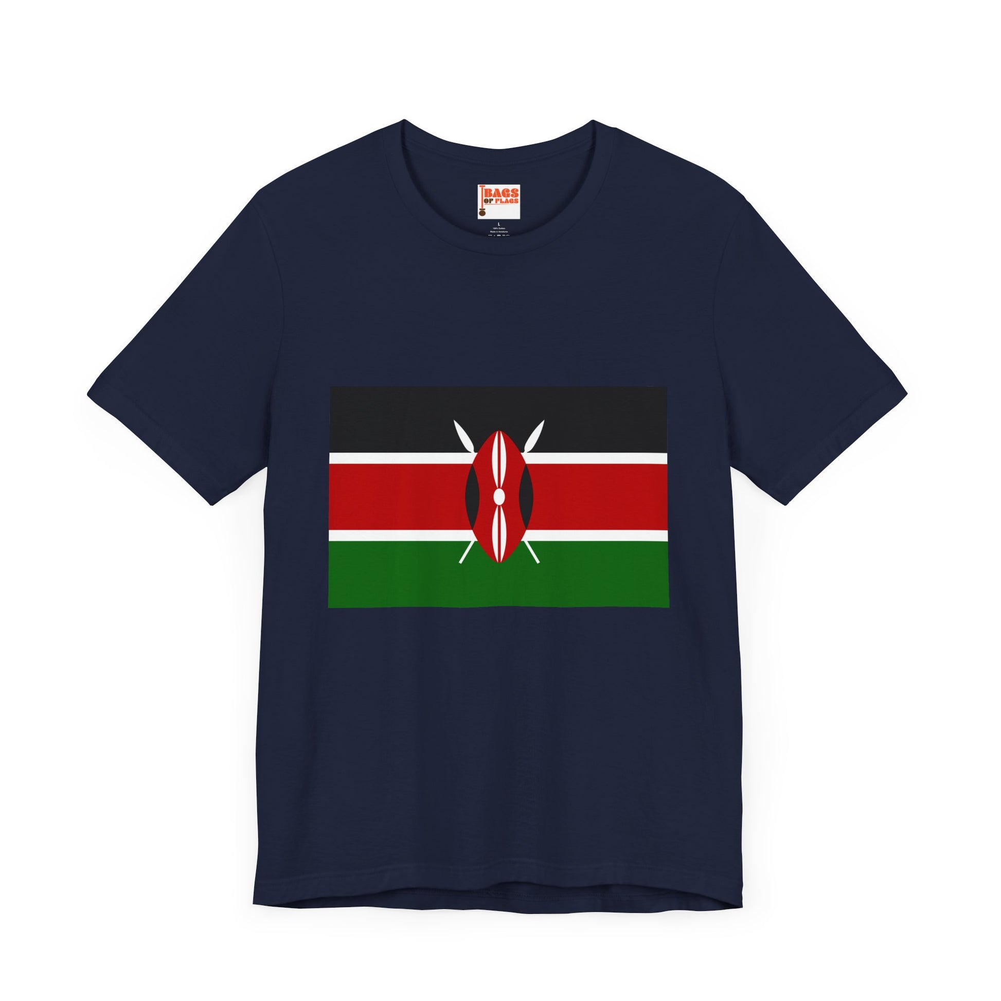 The Kenyan flag is deeply symbolic. The black stands for the people of Kenya, red represents the sacrifices made during the struggle for independence, and green reflects the land’s rich fertility. The white borders symbolize peace and honesty. At the heart of the design lies the Maasai shield and spears, embodying defense of freedom and cultural identity. Wearing this shirt is a powerful nod to the country’s strength and unity.
