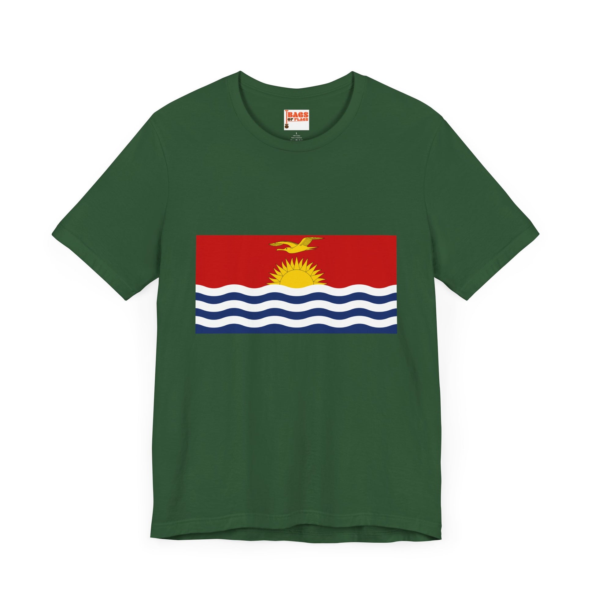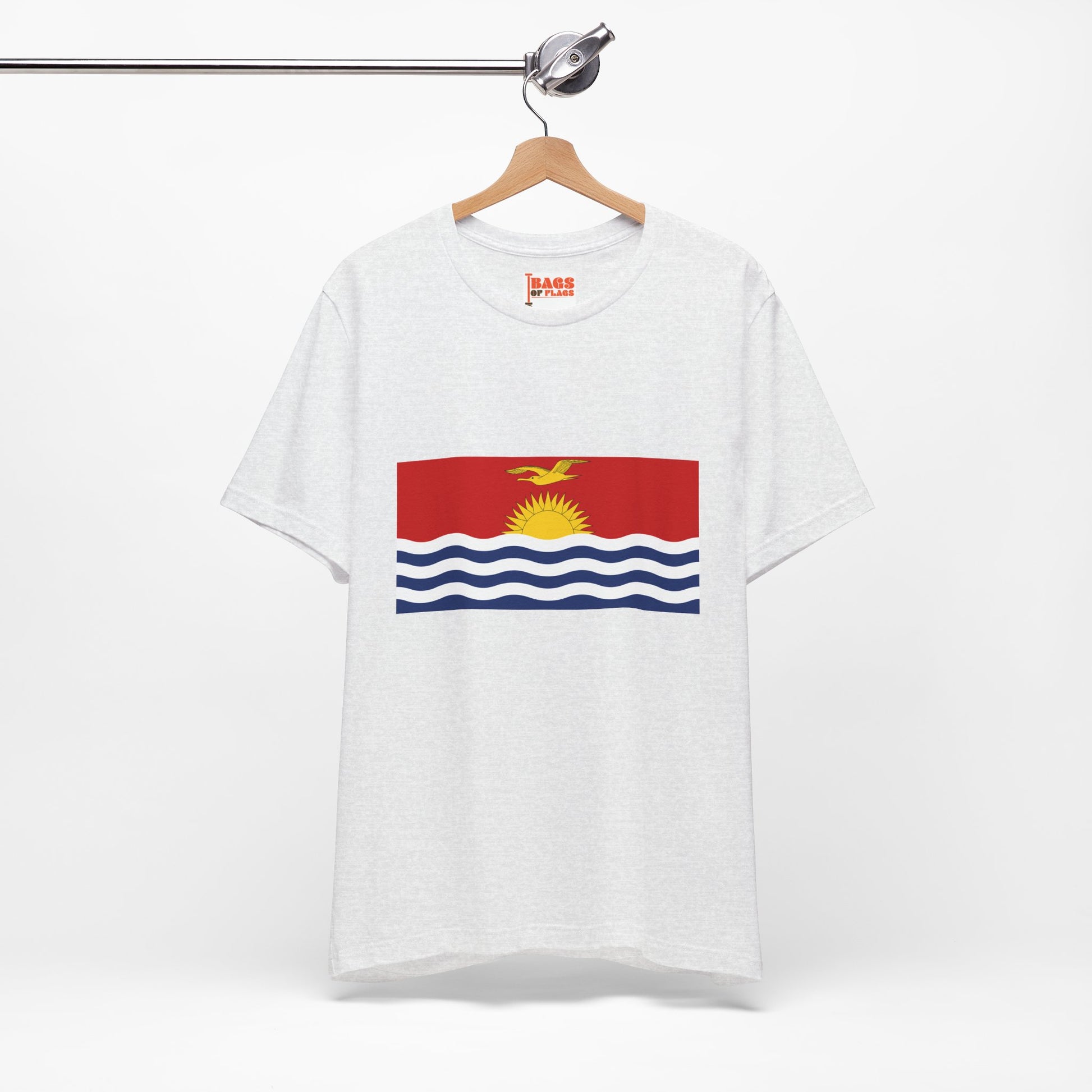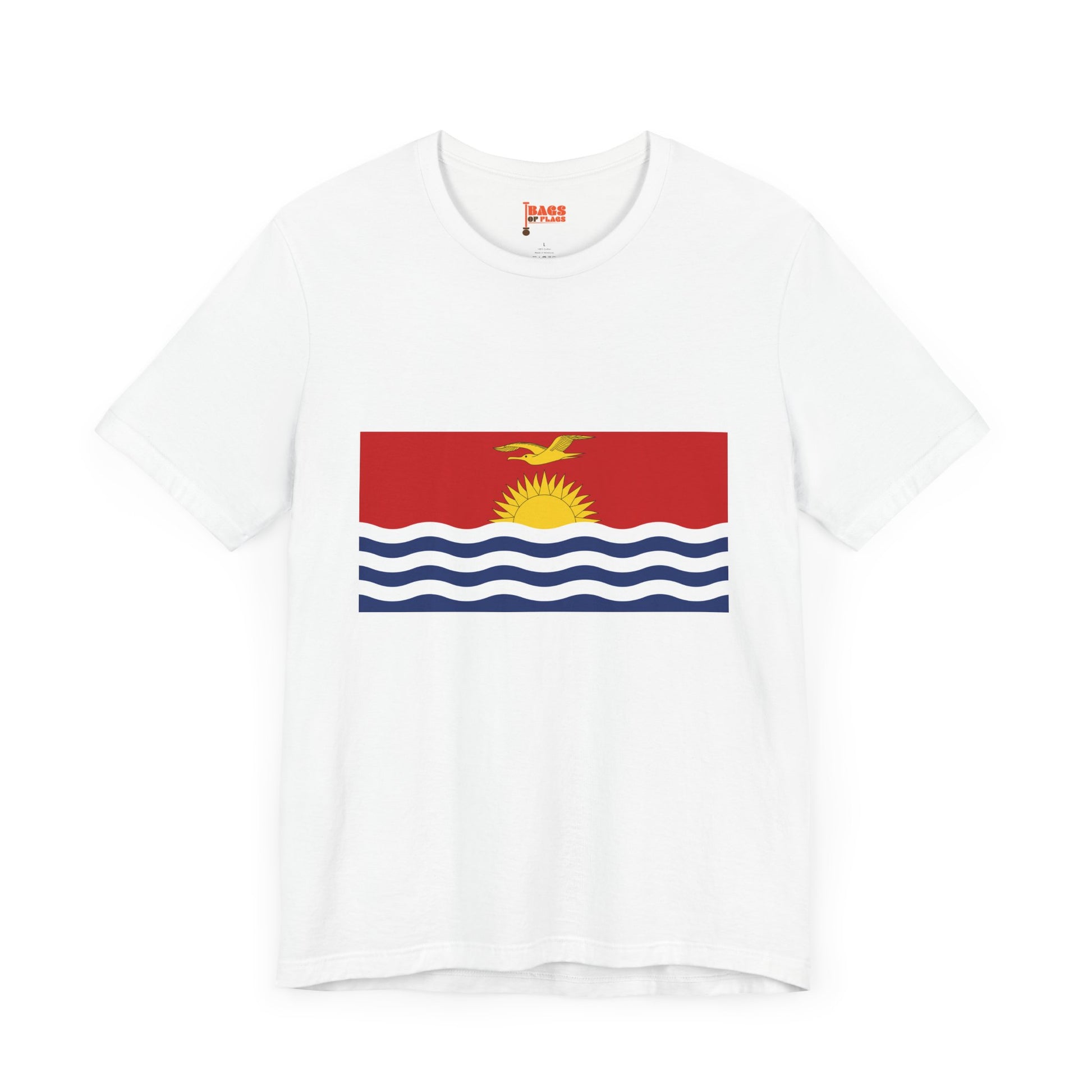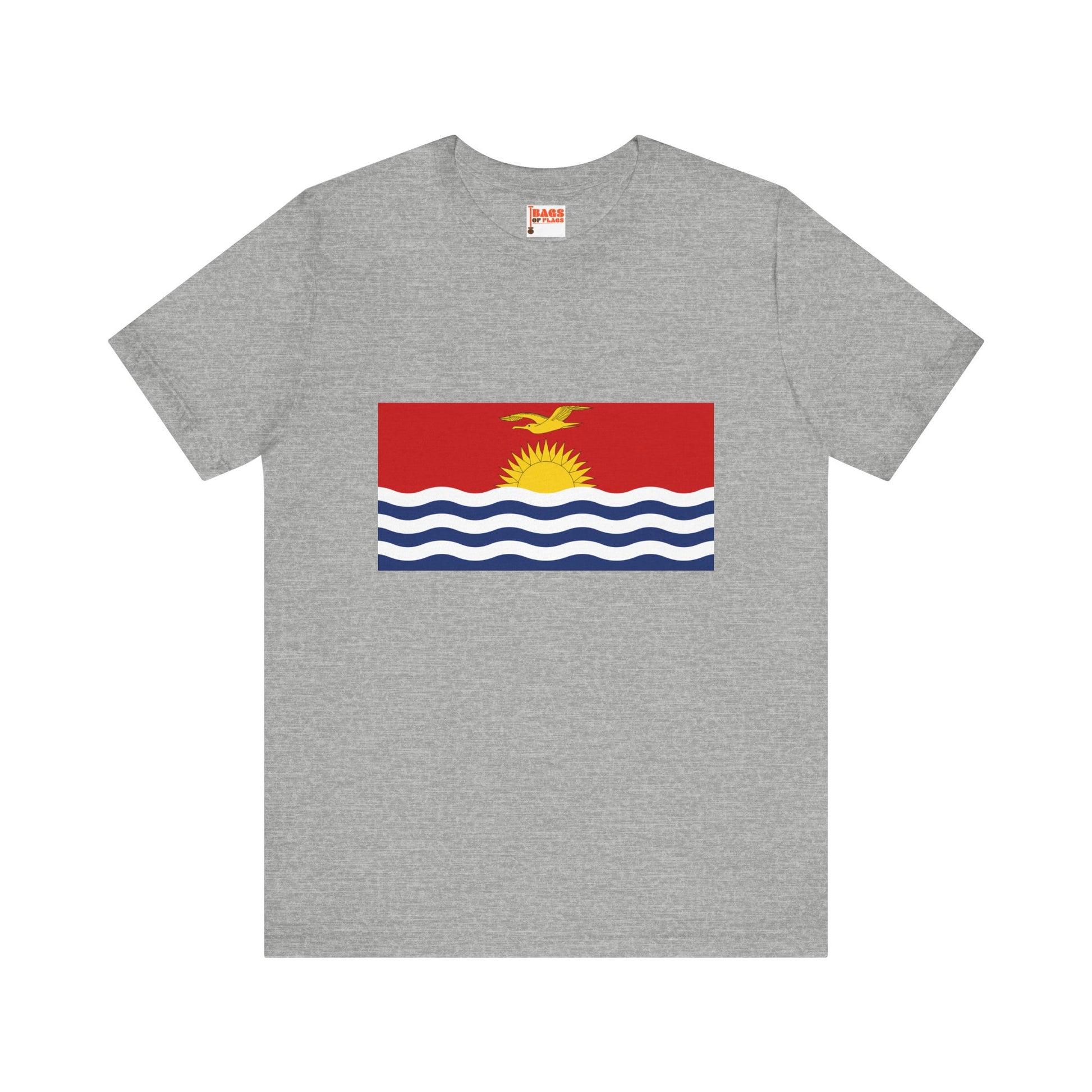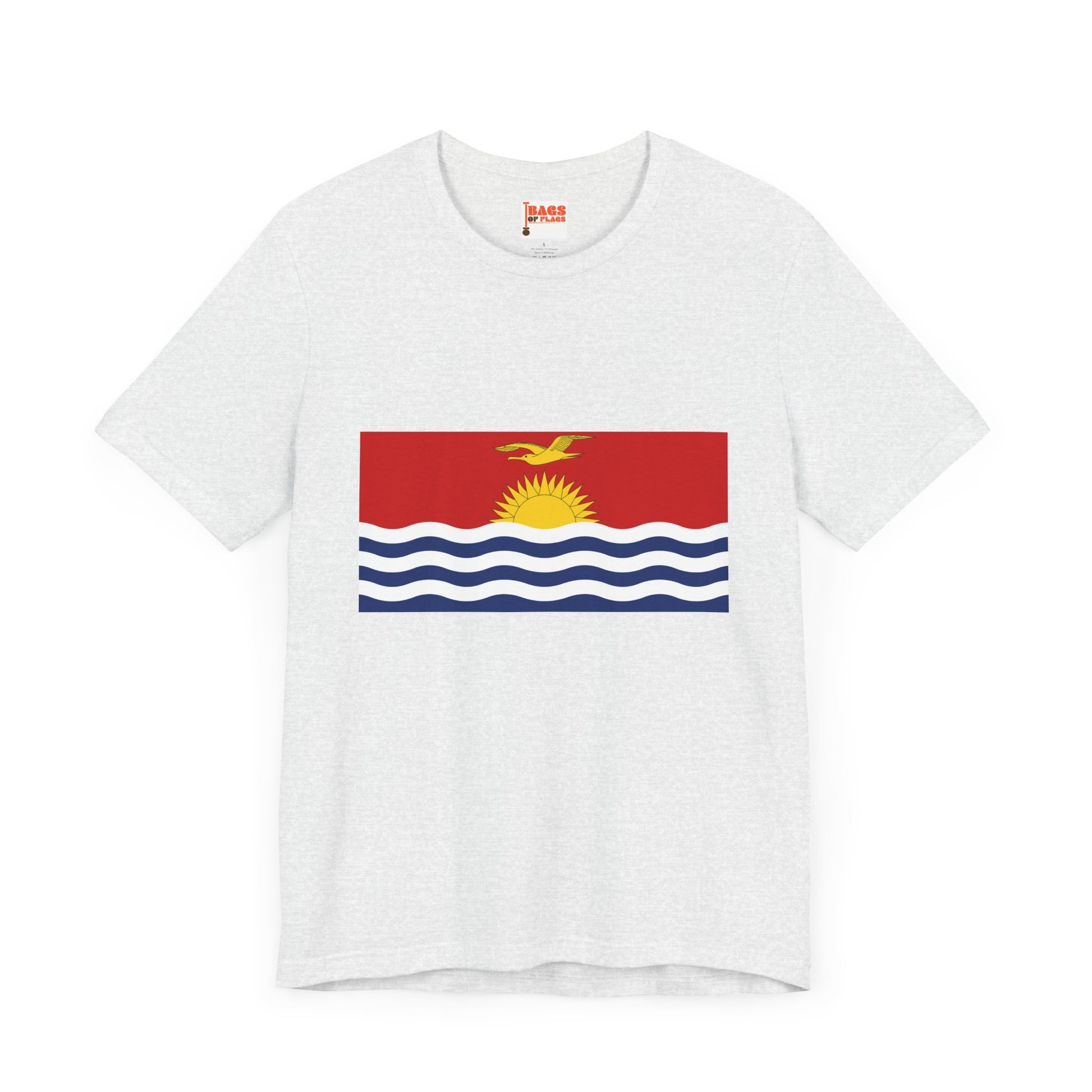 Make waves with the Kiribati Flag on T-shirt, a bold and vibrant tribute to one of the Pacific’s most visually striking national flags. This unisex heavy cotton tee captures the essence of Kiribati's flag—a radiant golden sun rising over white-and-blue ocean waves, topped with a soaring frigatebird in flight. Whether you're from the islands, connected through family or travel, or simply drawn to powerful coastal symbolism, this shirt brings warmth, identity, and meaning into your everyday wear.