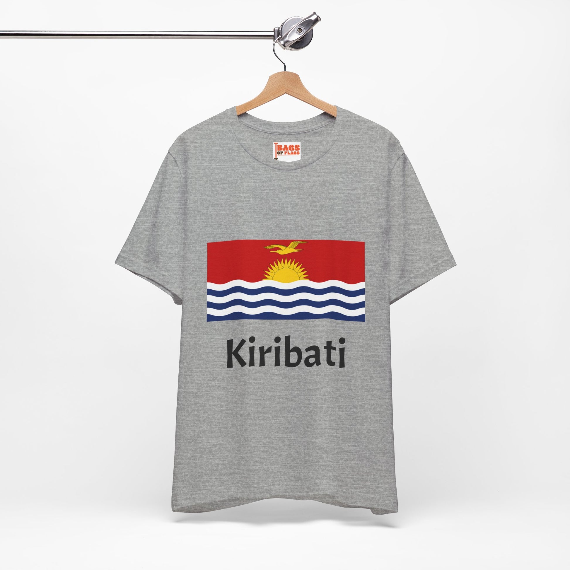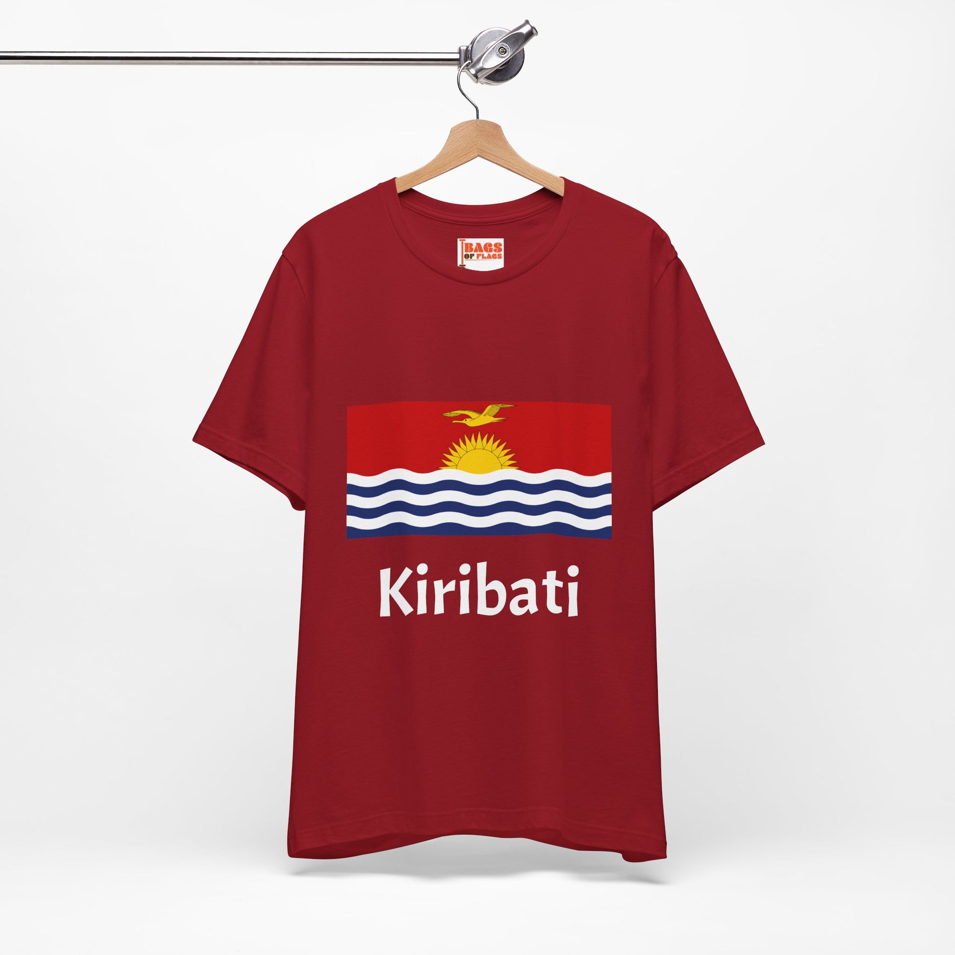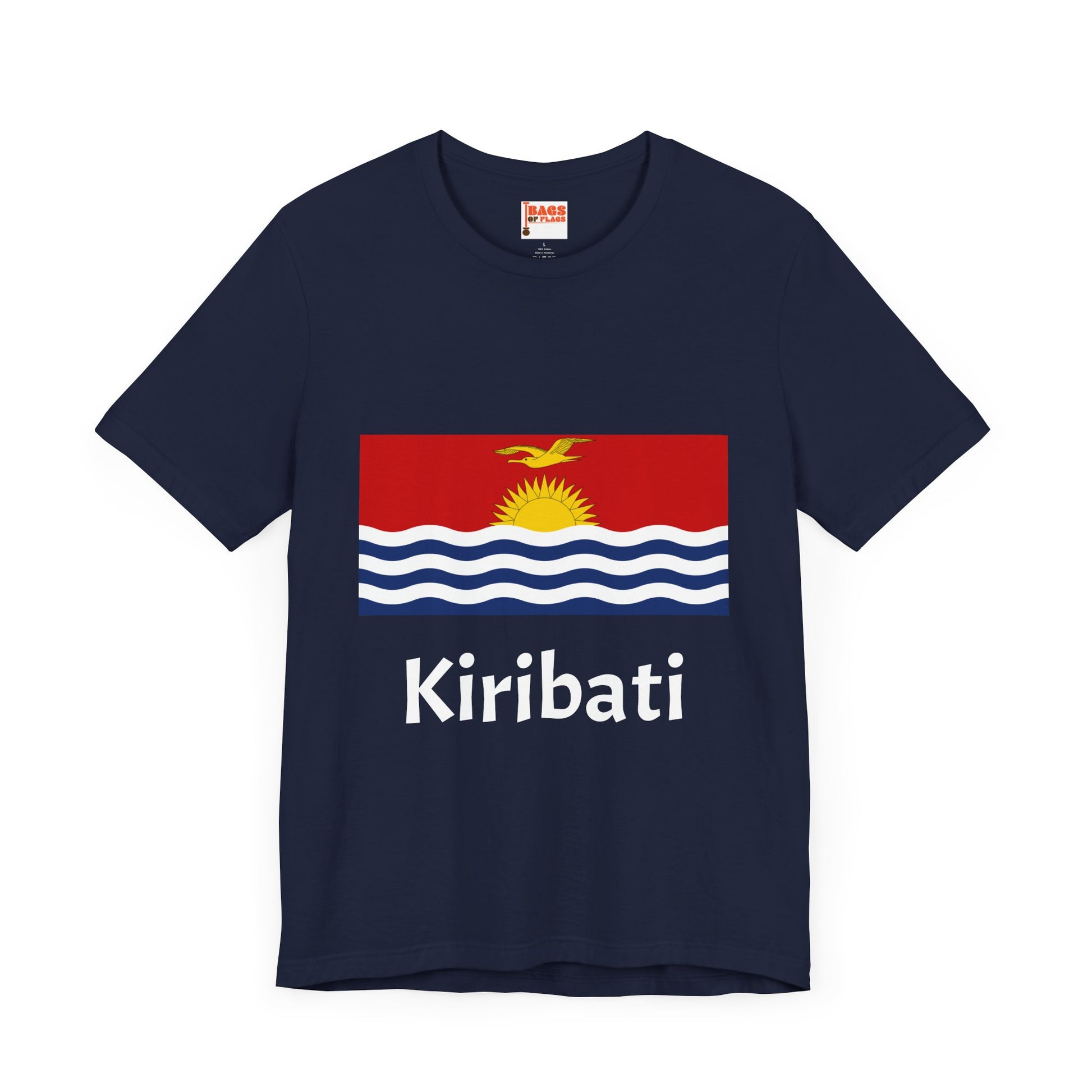 The flag of Kiribati is rich in imagery. The rising sun represents a new beginning and the 17 rays reflect the country's 16 Gilbert Islands and Banaba. The blue and white waves symbolize the Pacific Ocean and the islands scattered across it. The frigatebird soaring above symbolizes strength, freedom, and command of the sea and sky. This shirt is a wearable story—one of heritage, resilience, and the ocean’s embrace.