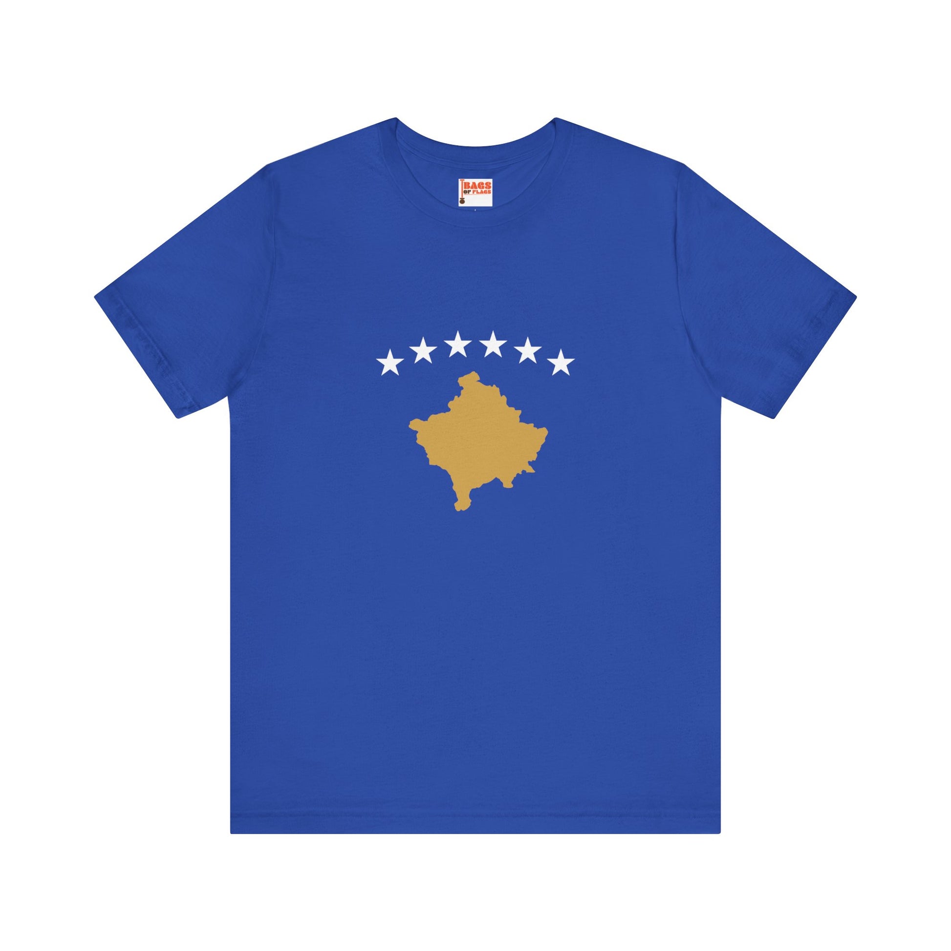 Show your pride or curiosity for the Balkans with our Kosovo Inspired T-shirt, a bold, stylish tribute to a country rich in history and resilience. Designed with elements drawn from the flag of Kosovo—a golden silhouette set beneath six white stars on a deep blue field—this tee captures the spirit of identity, unity, and independence. Whether you have roots in the region or simply admire its journey, this shirt lets you wear that connection with pride.
