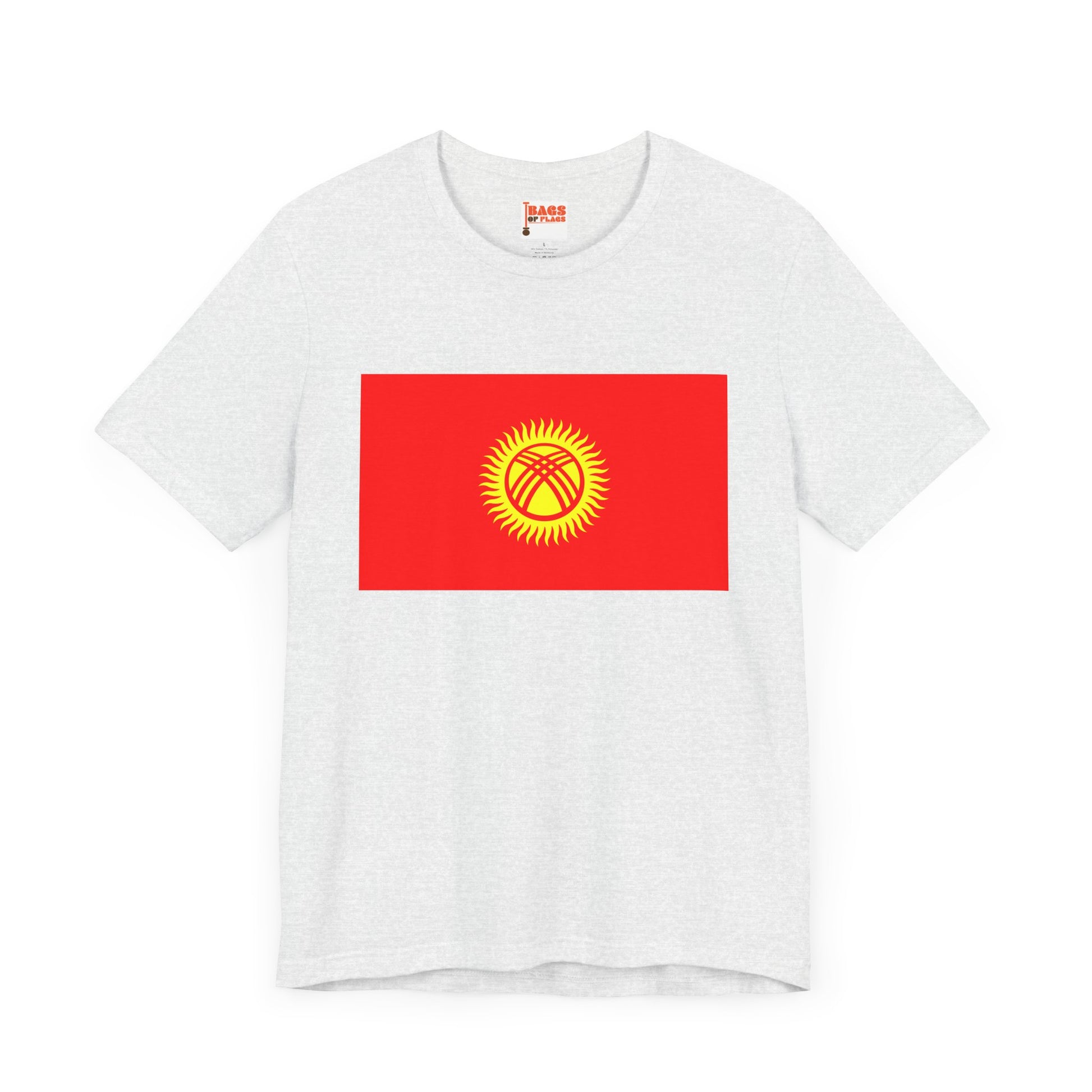Show off the striking beauty of Central Asia with the Kyrgyzstan Flag T-shirt. This bold design features the vibrant red field and golden sun emblem from the national flag—a powerful symbol of heritage, unity, and natural energy. At its center is the stylized tunduk, the roof of a yurt, symbolizing home, family, and tradition. Whether you have roots in Kyrgyzstan or simply admire its rich cultural spirit, this tee brings meaning to every wear.