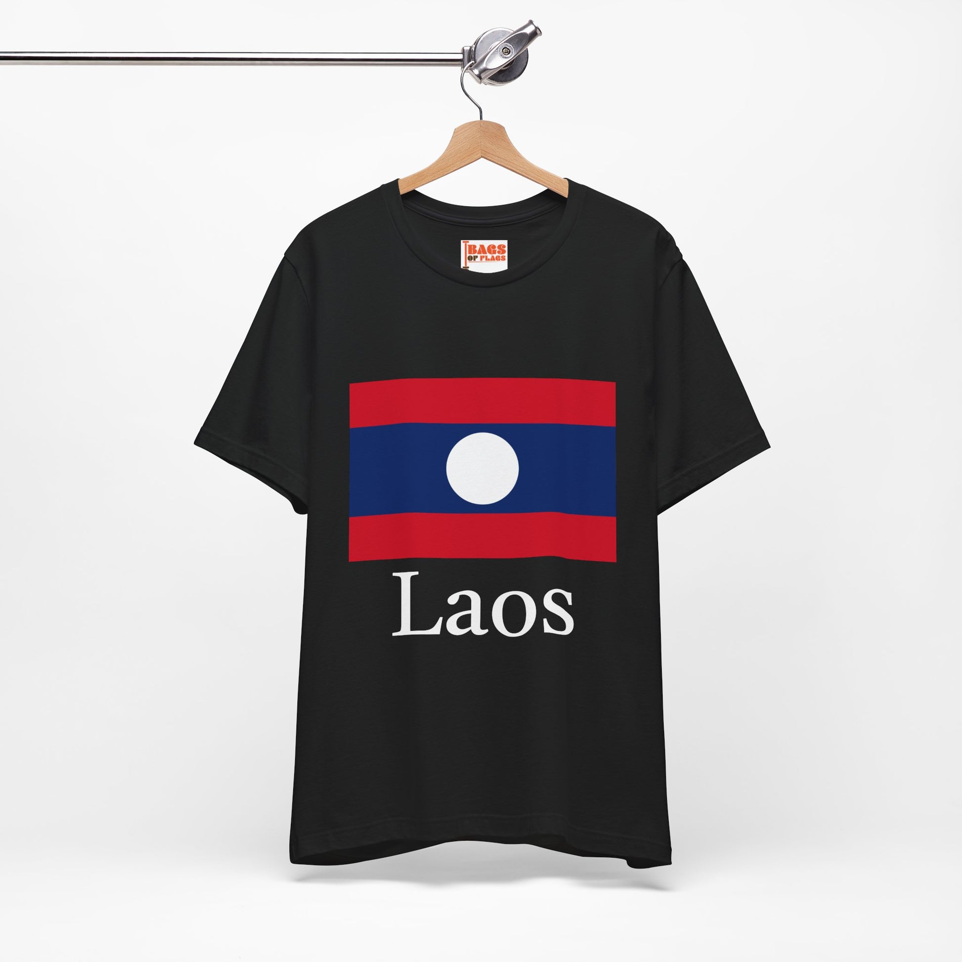 The Laos flag holds strong national meaning. The blue stripe stands for prosperity, the red stripes represent the blood shed for independence, and the white disc reflects the unity of the people under one nation—and one bright future. It also evokes the full moon over the Mekong River, a lifeline of Laos. Wearing this design is a quiet tribute to resilience, peace, and connection.