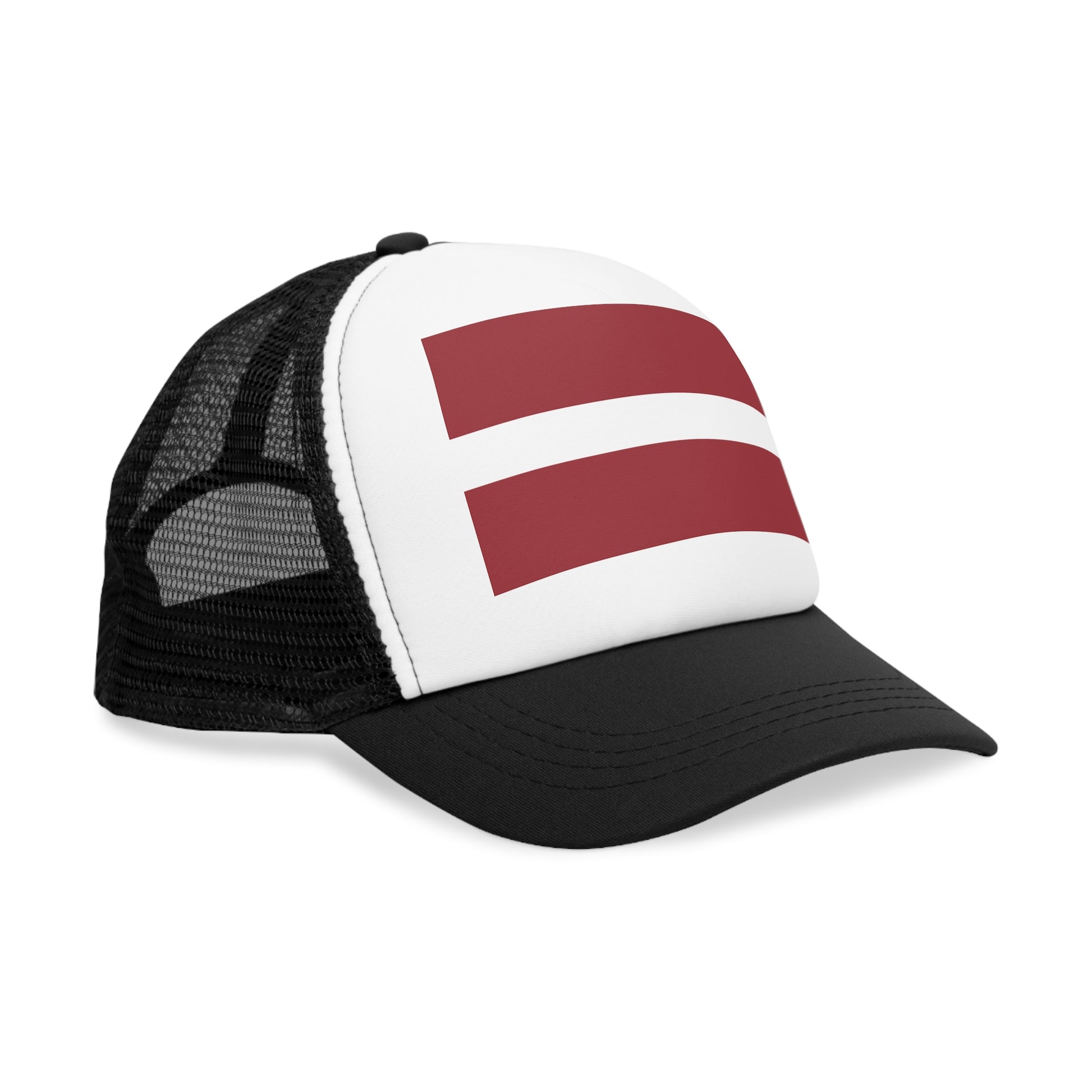 Celebrate Latvian heritage and timeless style with the Latvia Trucker Cap, designed for those who value national pride and classic comfort. The clean white front panel prominently displays a high-quality printed Latvian flag, whose deep carmine red and white stripes stand out vividly against the structured design. This modern yet meaningful cap blends patriotic symbolism with a versatile aesthetic that pairs easily with any outfit—perfect for everyday wear or cultural occasions.