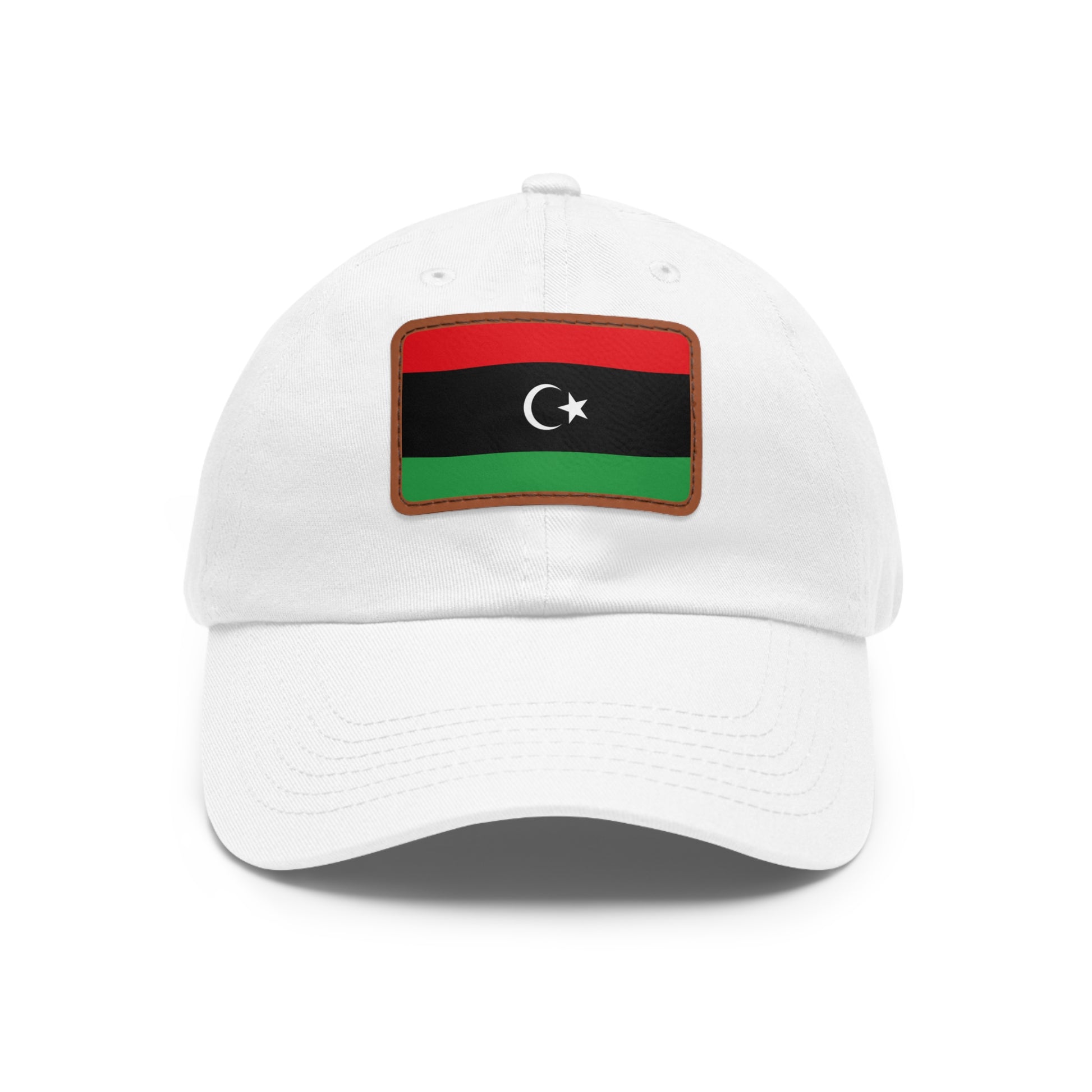 Show your pride in Libya’s enduring spirit and unity with the Libya Leather Patch Hat — a timeless dad hat crafted for comfort, meaning, and effortless style. Made from 100% bio-washed chino twill, it offers a soft, relaxed feel that’s perfect for daily wear. The faux leather patch showcases the flag of Libya, featuring bold horizontal stripes of red, black, and green with a white crescent and star — a proud emblem of freedom, faith, and resilience.