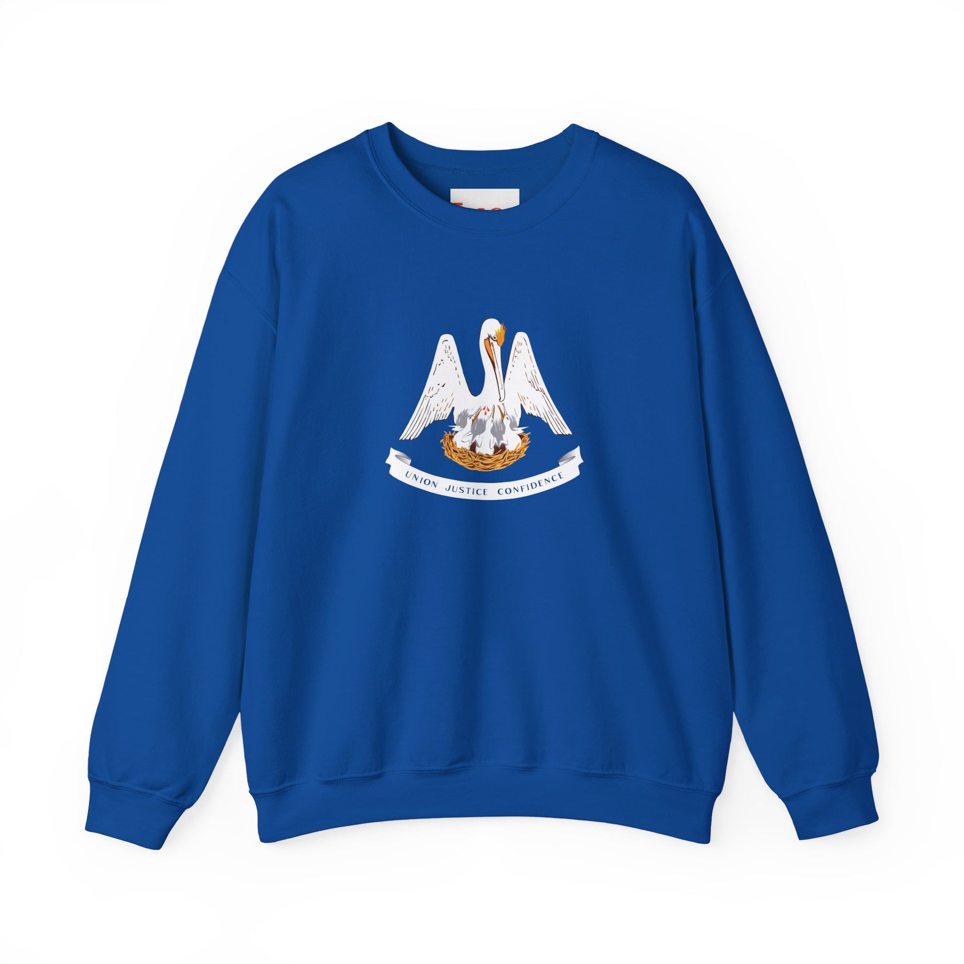 This design celebrates Louisiana’s identity as the Pelican State. The brown pelican, Louisiana’s state bird, symbolizes resilience, nurturing, and community spirit. The sweatshirt also draws inspiration from the state’s vibrant culture, including its music, cuisine, and festivals, reflecting the warmth, creativity, and diversity that define Louisiana.