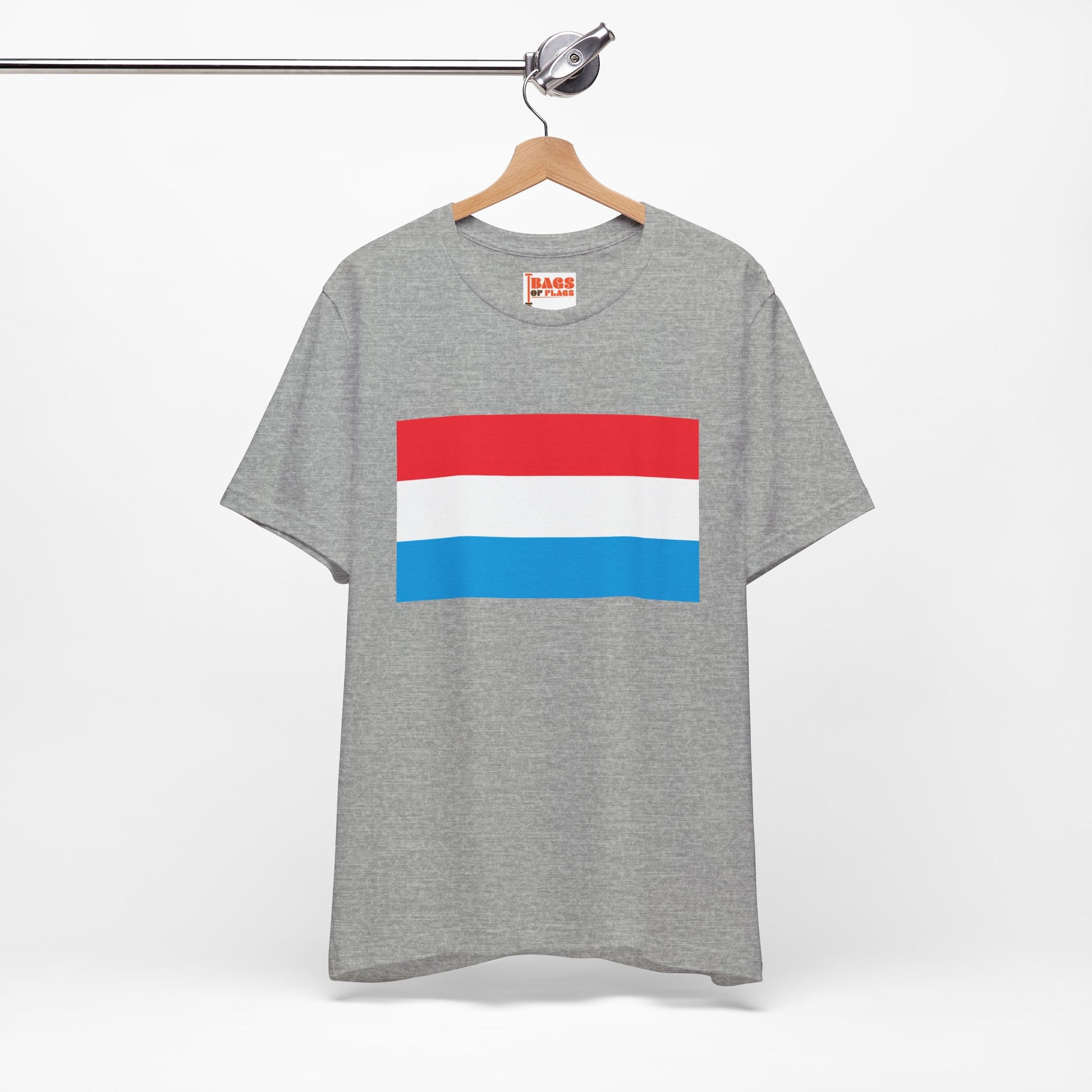 Celebrate the unique charm of the Grand Duchy with our Luxembourg Flag T-shirt. This unisex heavy cotton tee showcases the iconic Luxembourg flag, featuring horizontal stripes of red, white, and sky blue. It’s a clean, crisp design that proudly represents Luxembourg.