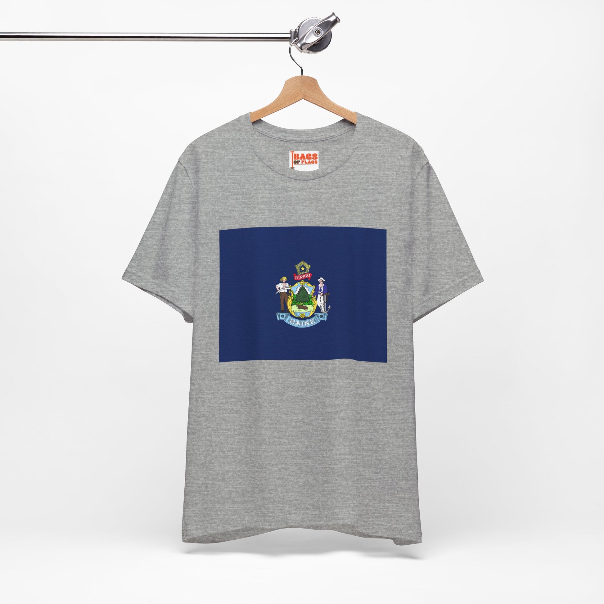 Celebrate the rugged beauty of the Pine Tree State with our Maine Flag T-Shirts. Whether you're strolling the rocky coast, exploring dense forests, or just proud to call Maine home, this unisex heavy cotton tee brings the official Maine state flag to life in vivid detail and soft comfort.