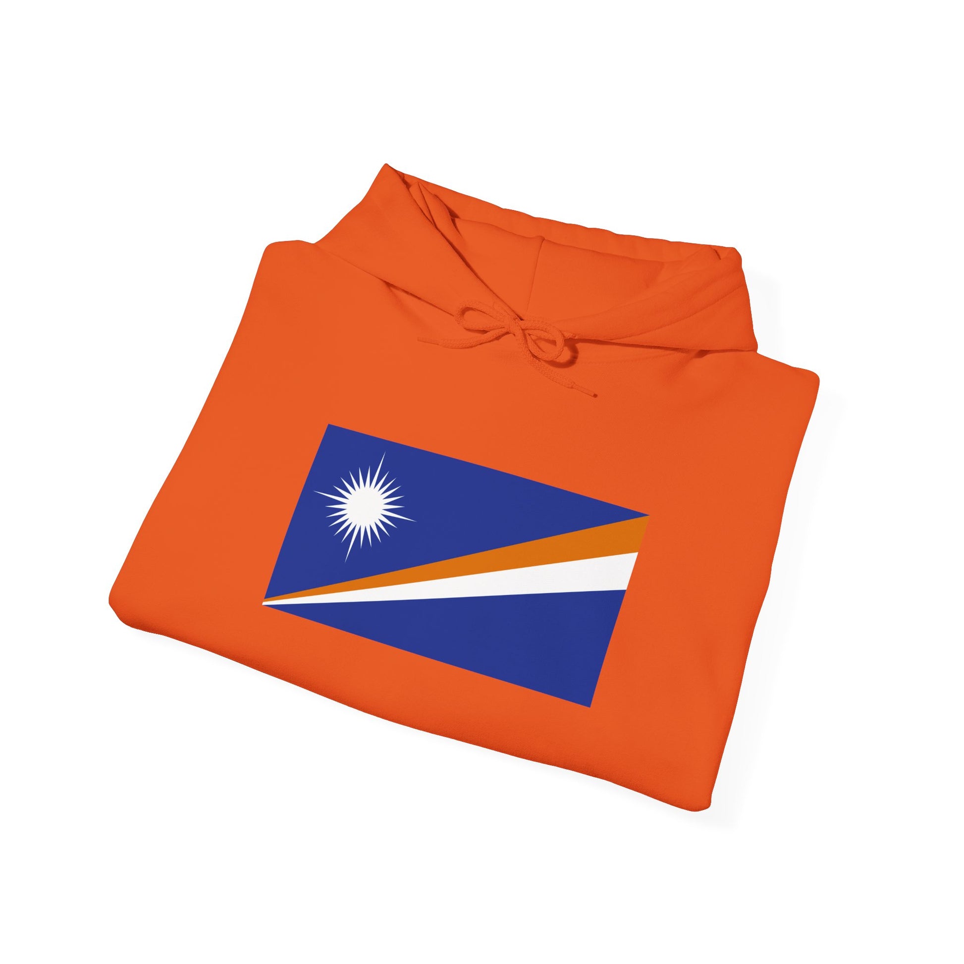 The Marshall Islands flag reflects its rich heritage: the blue background represents the Pacific Ocean, orange symbolizes bravery, white signifies peace, and the star represents the archipelago’s municipalities. Wearing this hoodie is a stylish and comfortable way to honor Marshall Islands’ identity.