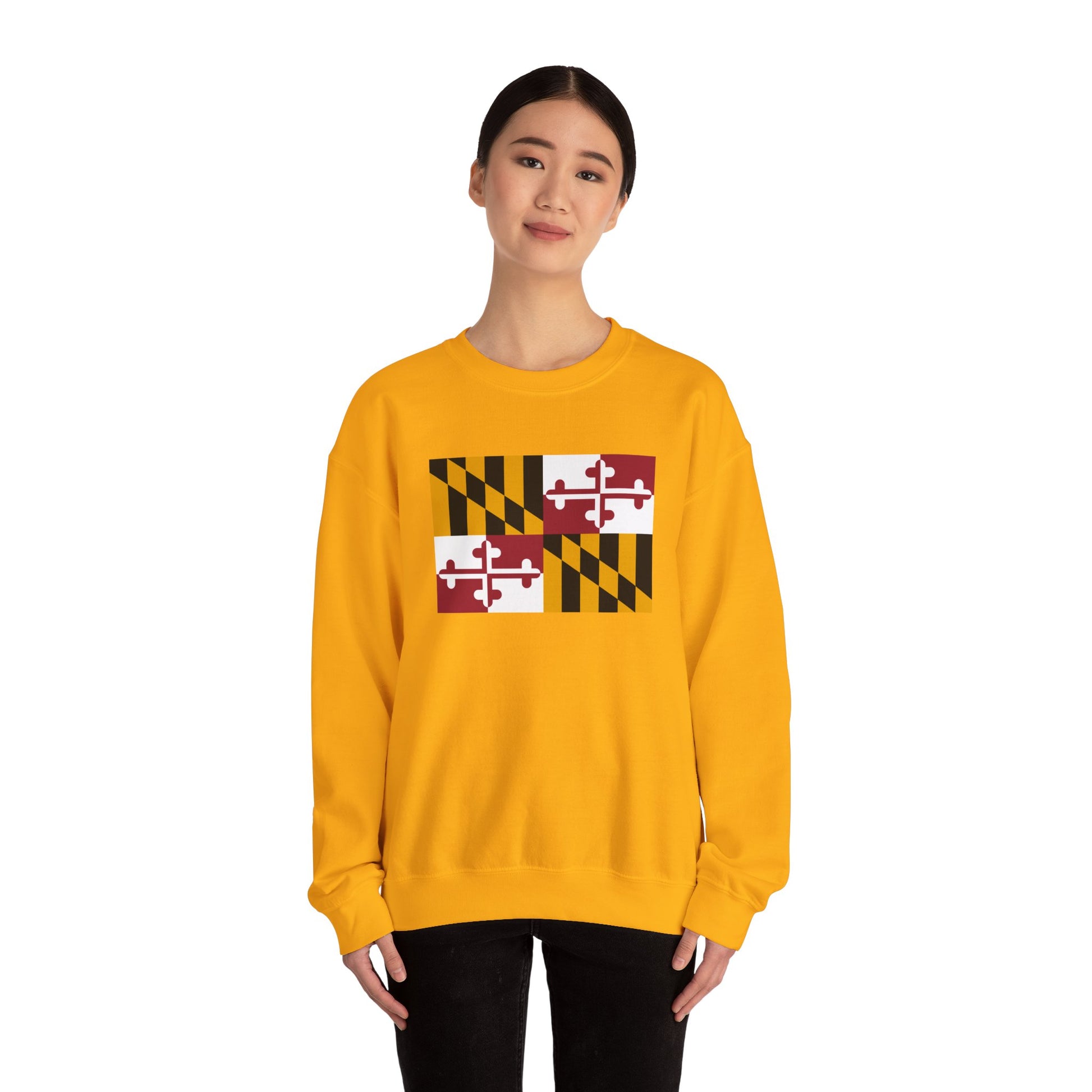 Designed for both comfort and style, this sweatshirt highlights the striking black-and-gold and red-and-white quadrants of the Maryland state flag. Its unisex fit makes it a versatile wardrobe staple, perfect for layering or wearing on its own. If you want to represent the Old Line State with a look that’s unmistakably Maryland, this sweatshirt delivers.