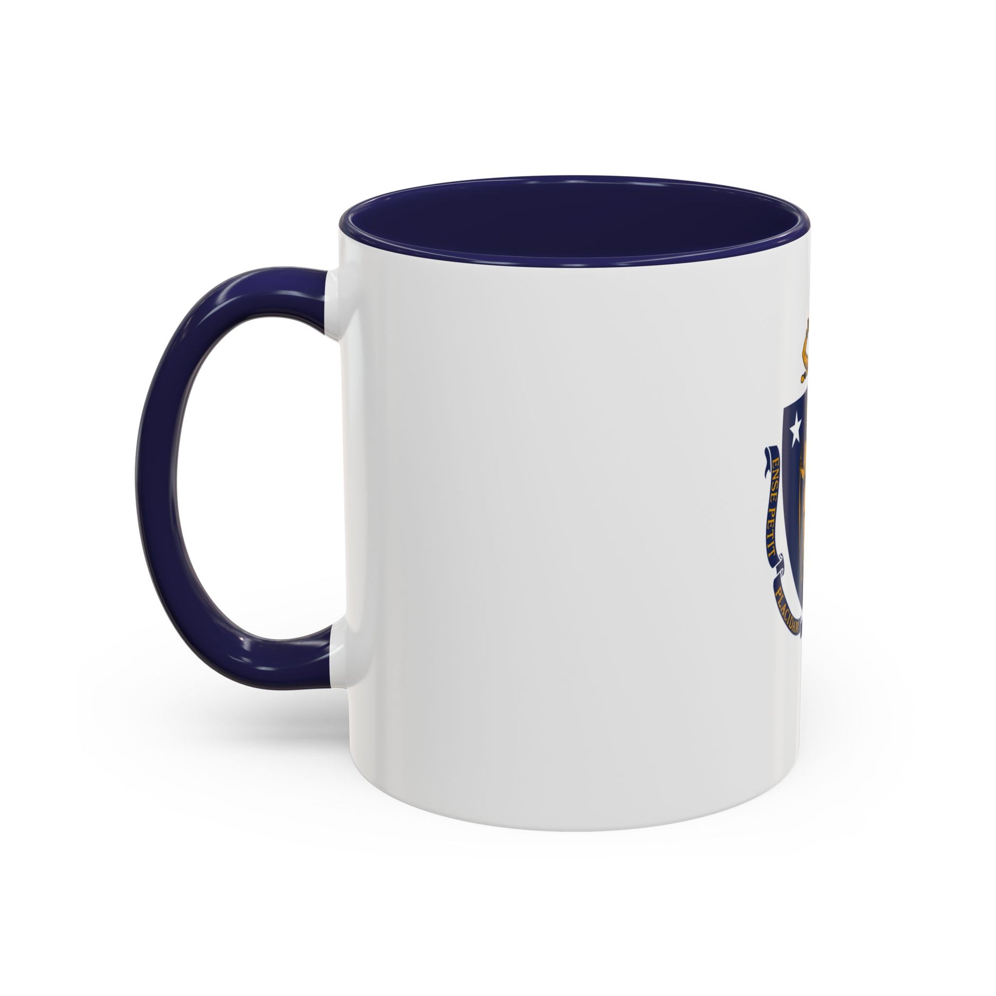 Bring a touch of New England history to your morning with the Massachusetts Mug. This ceramic mug displays the Massachusetts state flag, featuring a blue shield with a Native American figure holding a bow and arrow, a white star above the figure symbolizing statehood, and a decorative arm and sword above the shield. This design reflects Massachusetts’ rich cultural heritage, its Native American roots, and its enduring role in American history.