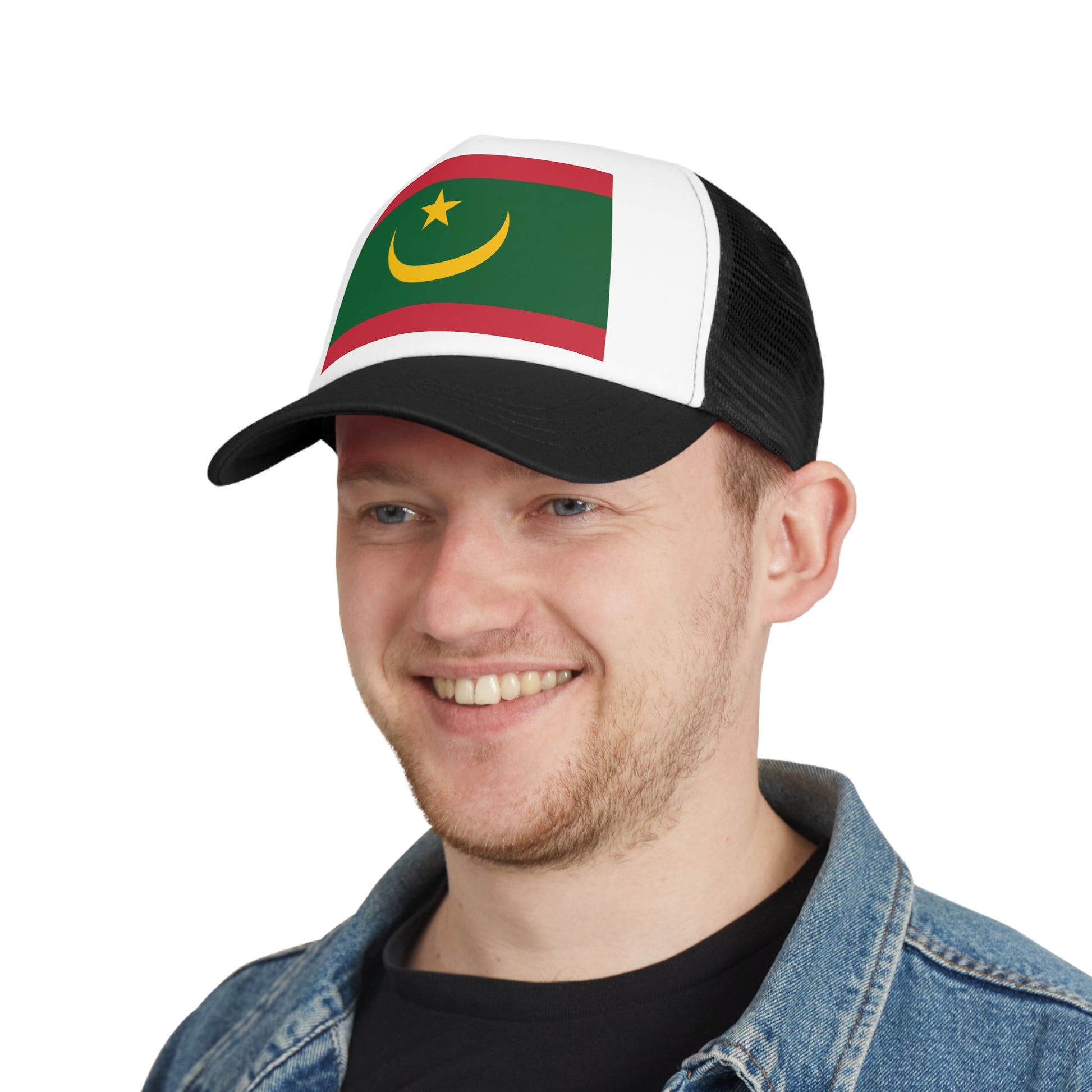 Display the beauty and spirit of Northwest Africa with the Mauritania Trucker Cap, a bold and meaningful piece for anyone connected to this proud desert nation. The design features the Mauritanian flag printed on a crisp white front panel, highlighting its striking green field, golden crescent, and star — a blend of heritage, faith, and unity. Whether you're honoring your roots, celebrating culture, or simply love unique flag artwork, this cap brings comfort and purpose into one timeless everyday accessory.