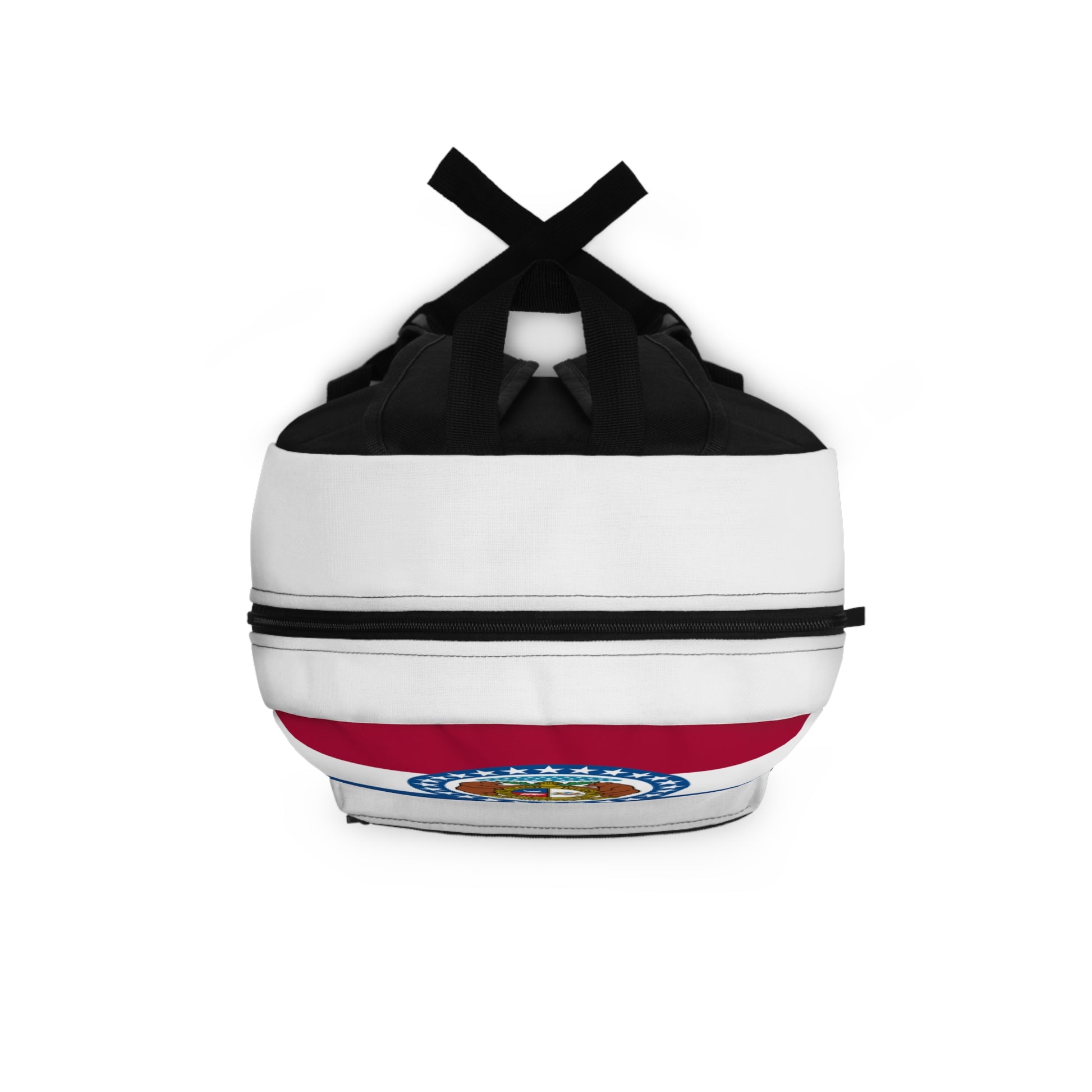 Carry a piece of the Show-Me State with you wherever you go with the Missouri Backpack, inspired by the proud and classic flag of Missouri. The design features horizontal red, white, and blue stripes symbolizing valor, purity, and justice — timeless American ideals deeply rooted in Missouri’s heritage. At the center sits the state seal, encircled by 24 stars marking Missouri’s place as the 24th state in the Union. The seal itself tells a story of balance and unity, with the two grizzly bears representing courage and strength, and the motto “United We Stand, Divided We Fall” expressing the state’s steadfast spirit.