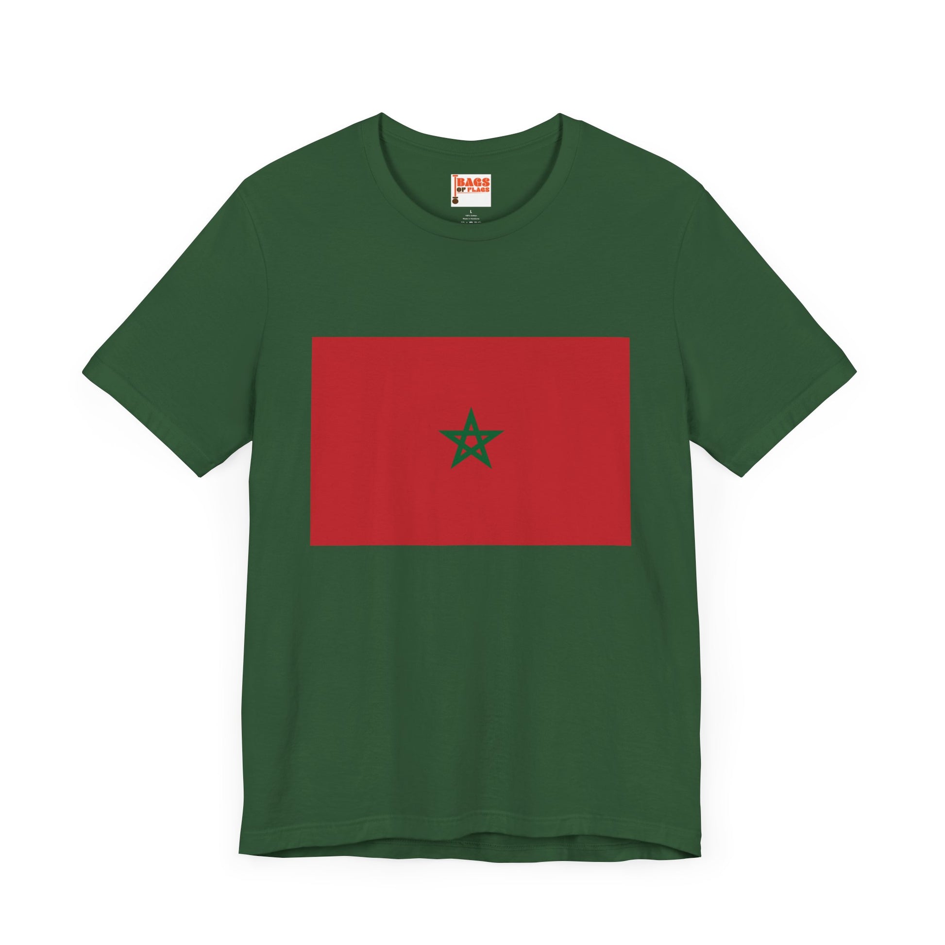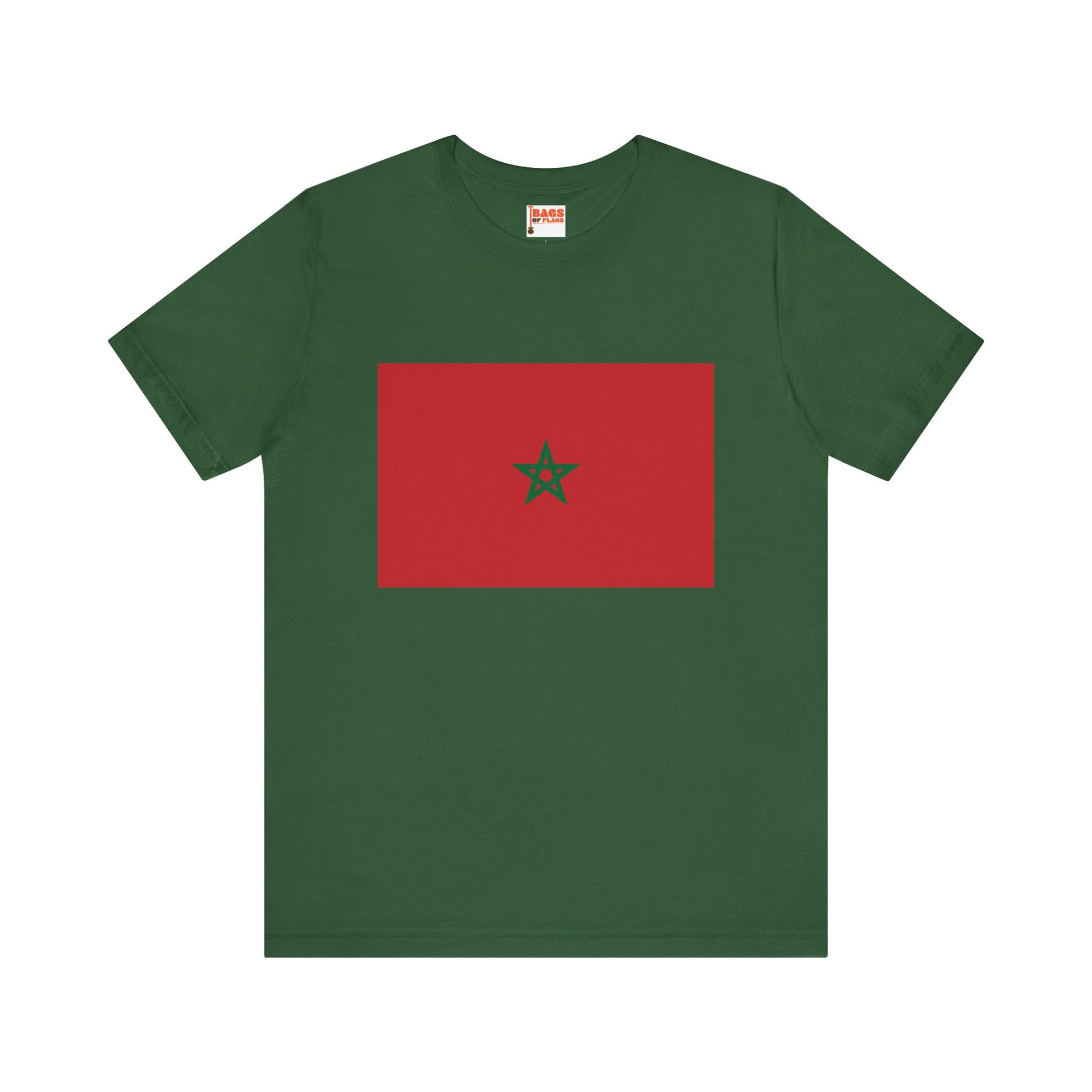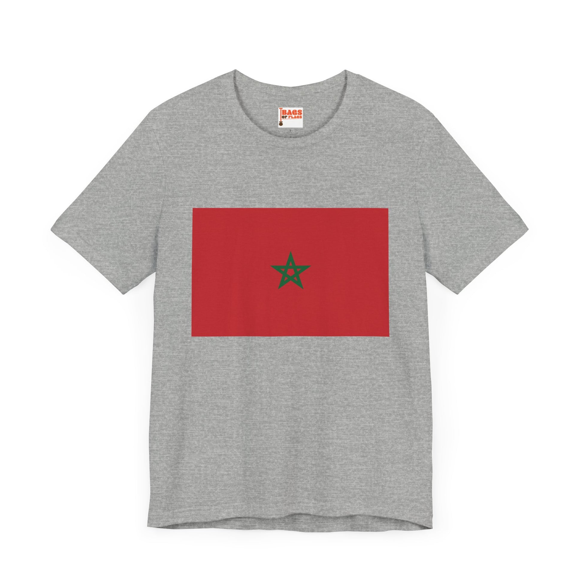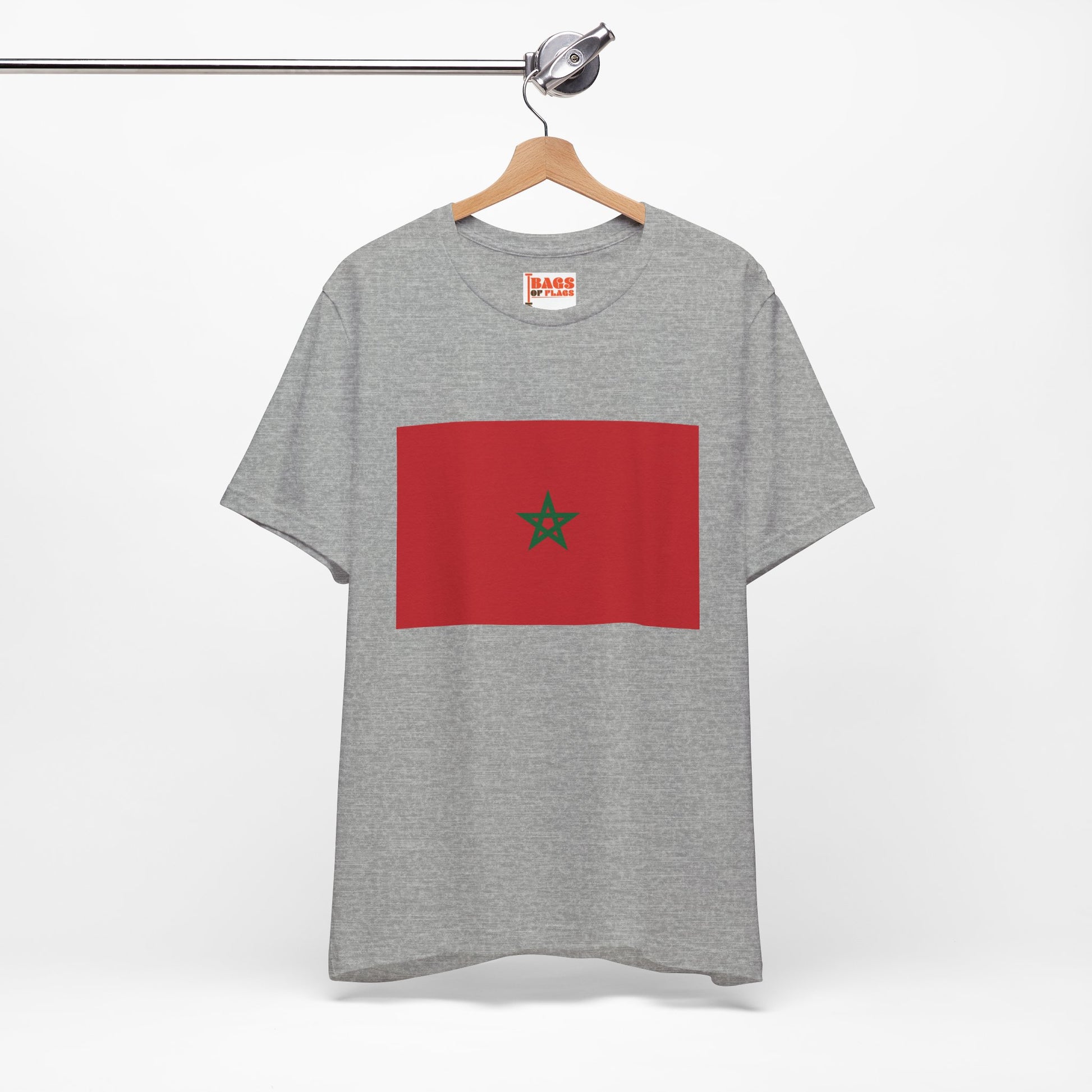 Celebrate the vibrant spirit of Morocco with this striking Morocco Flag T-shirt, featuring the iconic red background and the green five-pointed star at its center. This design captures the essence of Moroccan pride and tradition in a sleek, wearable form.