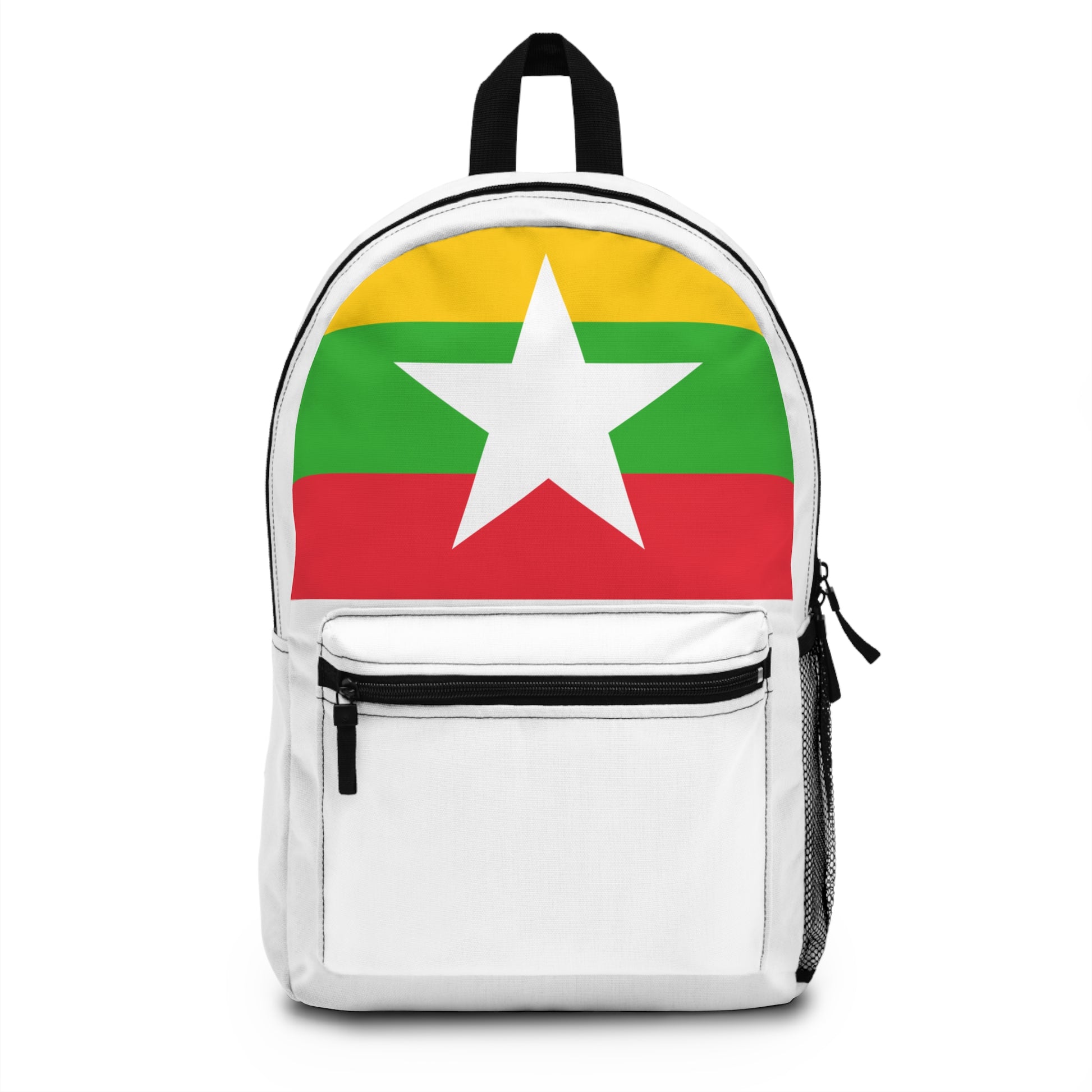 Carry your essentials with pride and Southeast Asian style with the Myanmar Backpack, featuring the yellow, green, and red horizontal stripes with a white five-pointed star of the Myanmar flag. Perfect for school, work, travel, or celebrating Myanmar, this backpack blends practical functionality with meaningful national symbolism.