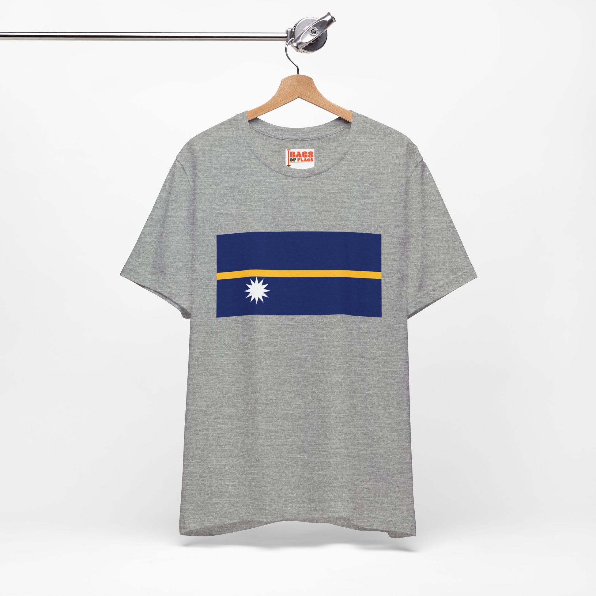 Honor the pride and identity of the Pacific with this striking Nauru Flag T-shirt. Featuring the bold horizontal stripe and white star of Nauru’s national flag, this design pays tribute to the island’s rich history and its position just below the equator. Whether you’re representing your roots or showcasing global awareness, this shirt is a standout piece that speaks volumes.