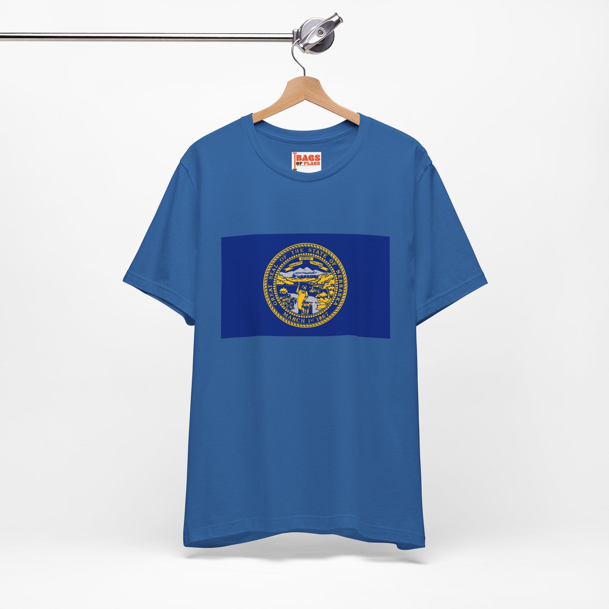 Celebrate your Cornhusker pride with our Nebraska Flag T-Shirts—a wearable tribute to the heart of the Great Plains. Featuring a bold, detailed print of the official Nebraska state flag, this unisex heavy cotton tee is perfect for anyone who loves where they come from and wants to show it off in style.