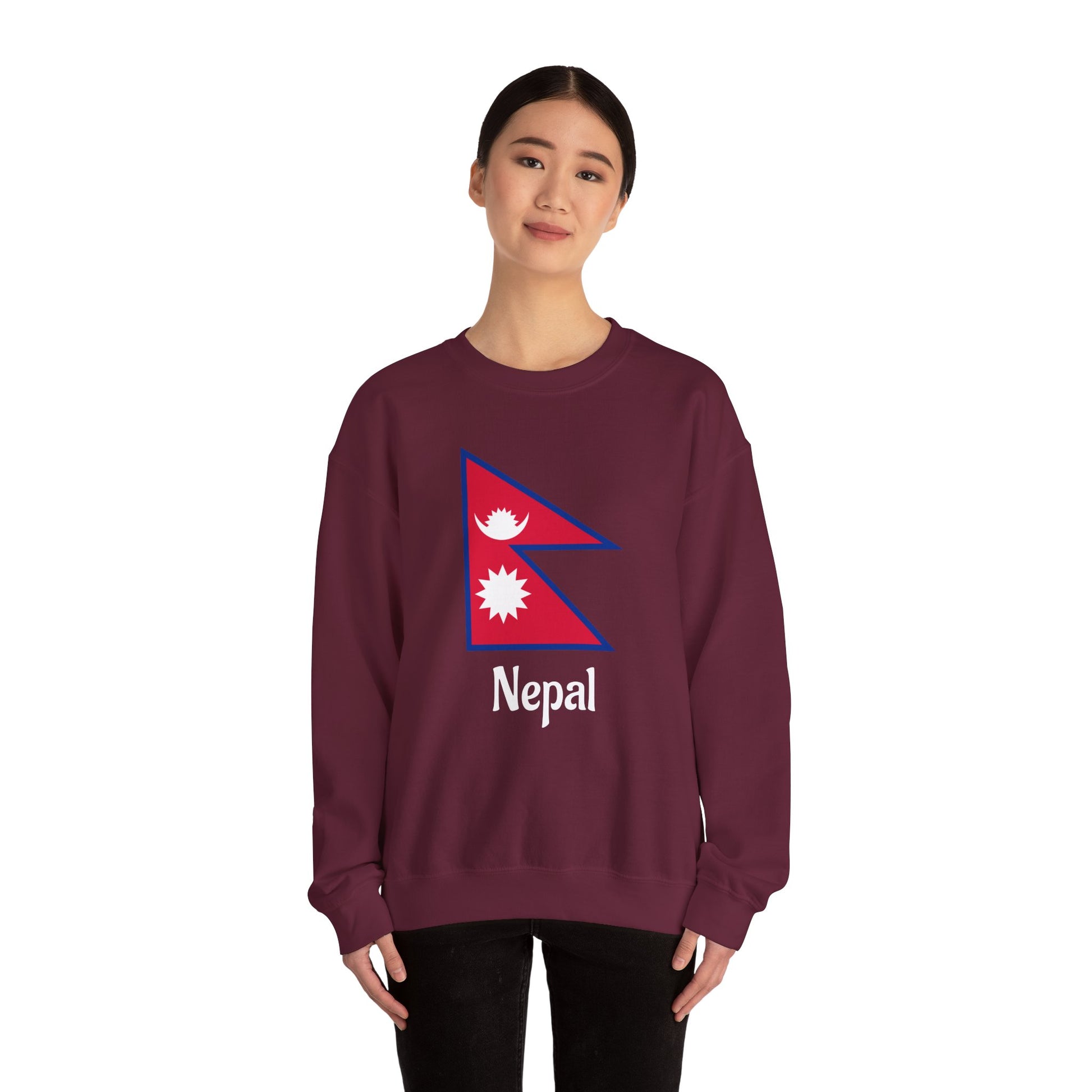 The flag of Nepal is the only non-rectangular national flag in the world, instantly recognizable for its unique shape and profound meaning. Its crimson red represents bravery and is also the country’s national color, while the blue border symbolizes peace. The white moon and sun highlight Nepal’s hope for permanence—the nation will endure as long as the celestial bodies remain. Together, the flag’s design reflects courage, harmony, and the timeless endurance of the Nepali people. Wearing the Nepal Sweatshirt is a way to honor this enduring spirit.