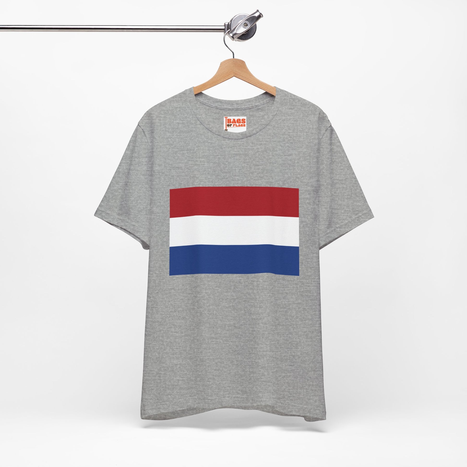 Celebrate the timeless spirit of the Netherlands with this bold and classic Netherlands Flag T-shirt. Featuring the iconic red, white, and blue tricolor design, this shirt is perfect for honoring Dutch heritage, cheering on national teams, or simply showcasing your love for one of Europe’s most culturally rich nations.