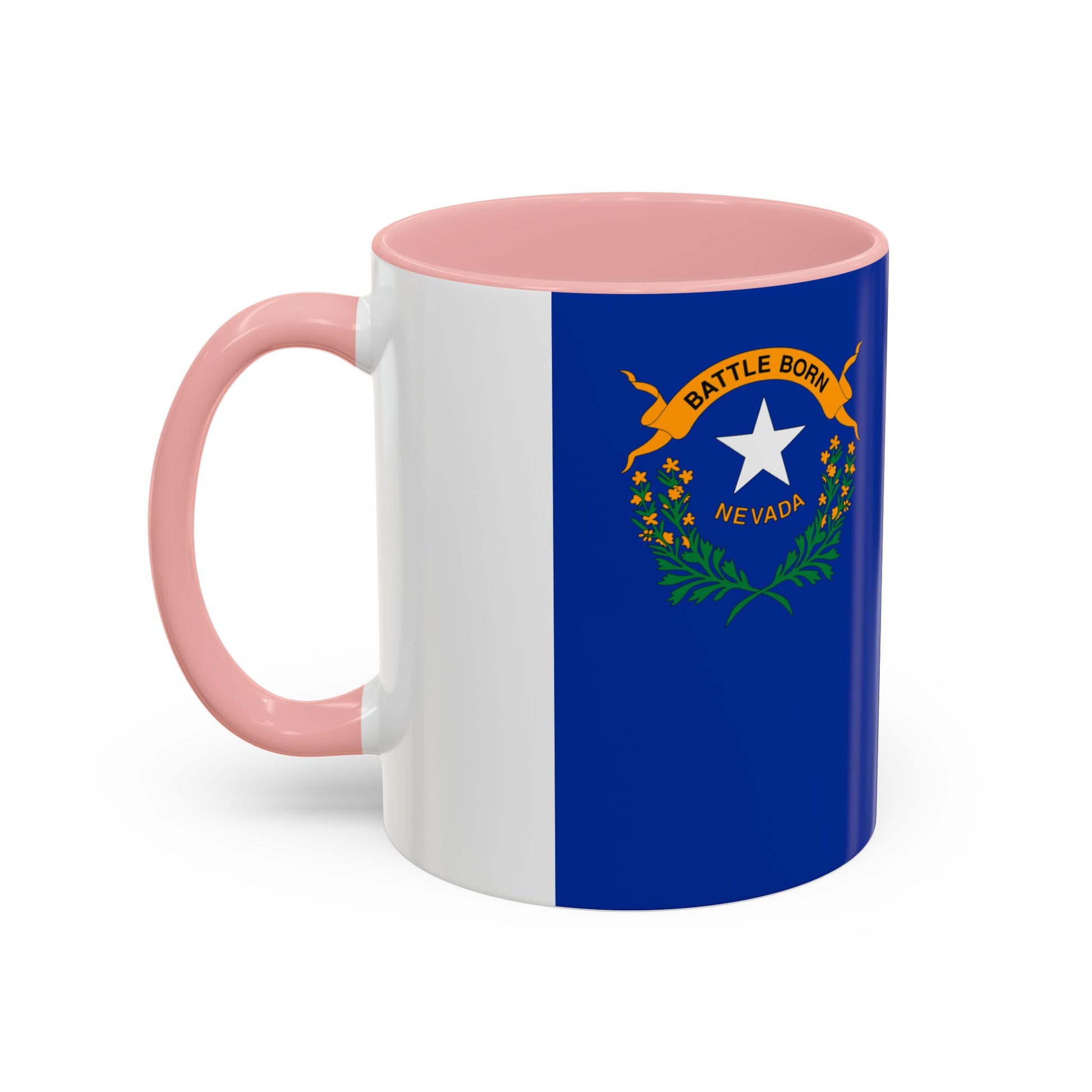 Kickstart your day with Silver State pride using the Nevada Mug. This ceramic mug showcases the Nevada state flag, featuring a cobalt blue field with a silver star and a flowing banner that reads “Battle Born,” symbolizing Nevada’s entry into the Union during the Civil War. The surrounding sagebrush, the state flower, highlights Nevada’s natural beauty and resilience. Every sip is a reminder of Nevada’s history, independence, and rugged landscapes.