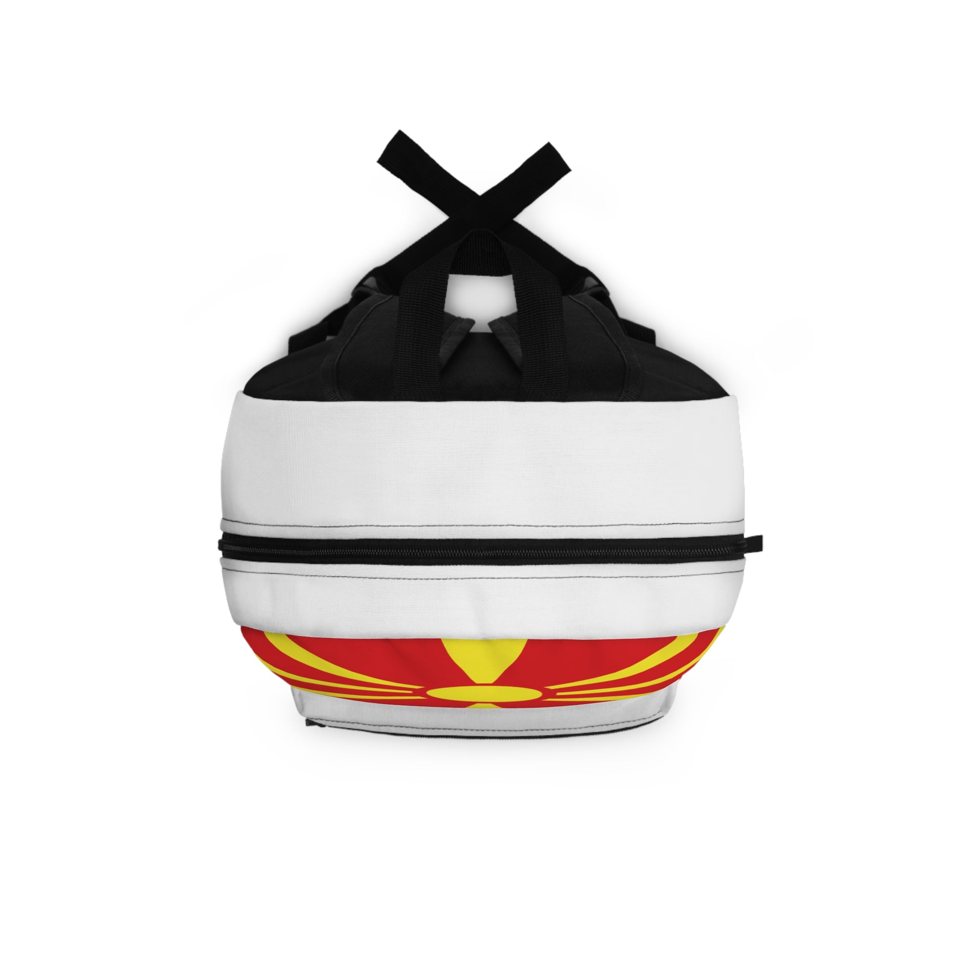 The flag of North Macedonia features a radiant yellow sun with eight extending rays across a red background. This powerful emblem, officially adopted in 1995, symbolizes "the new sun of liberty" celebrated in the country’s national anthem. The red and yellow are traditional Macedonian colors, representing strength, freedom, and cultural heritage. Wearing this backpack allows you to carry a piece of North Macedonia’s national pride wherever life takes you.