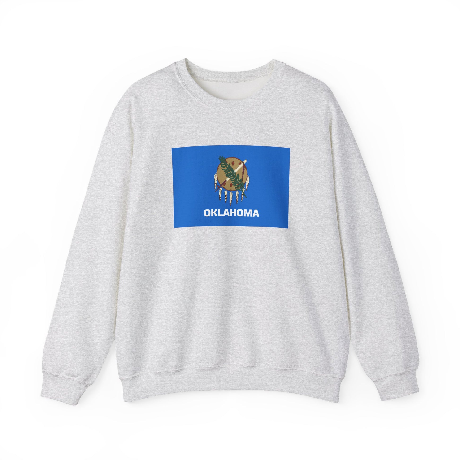 Show your Sooner State pride with this Oklahoma Flag Sweatshirt, featuring a design inspired by the official state flag. The distinctive sky-blue field and Native American shield make this unisex crewneck a standout piece, perfect for exploring Tulsa, attending local events, or relaxing at home.