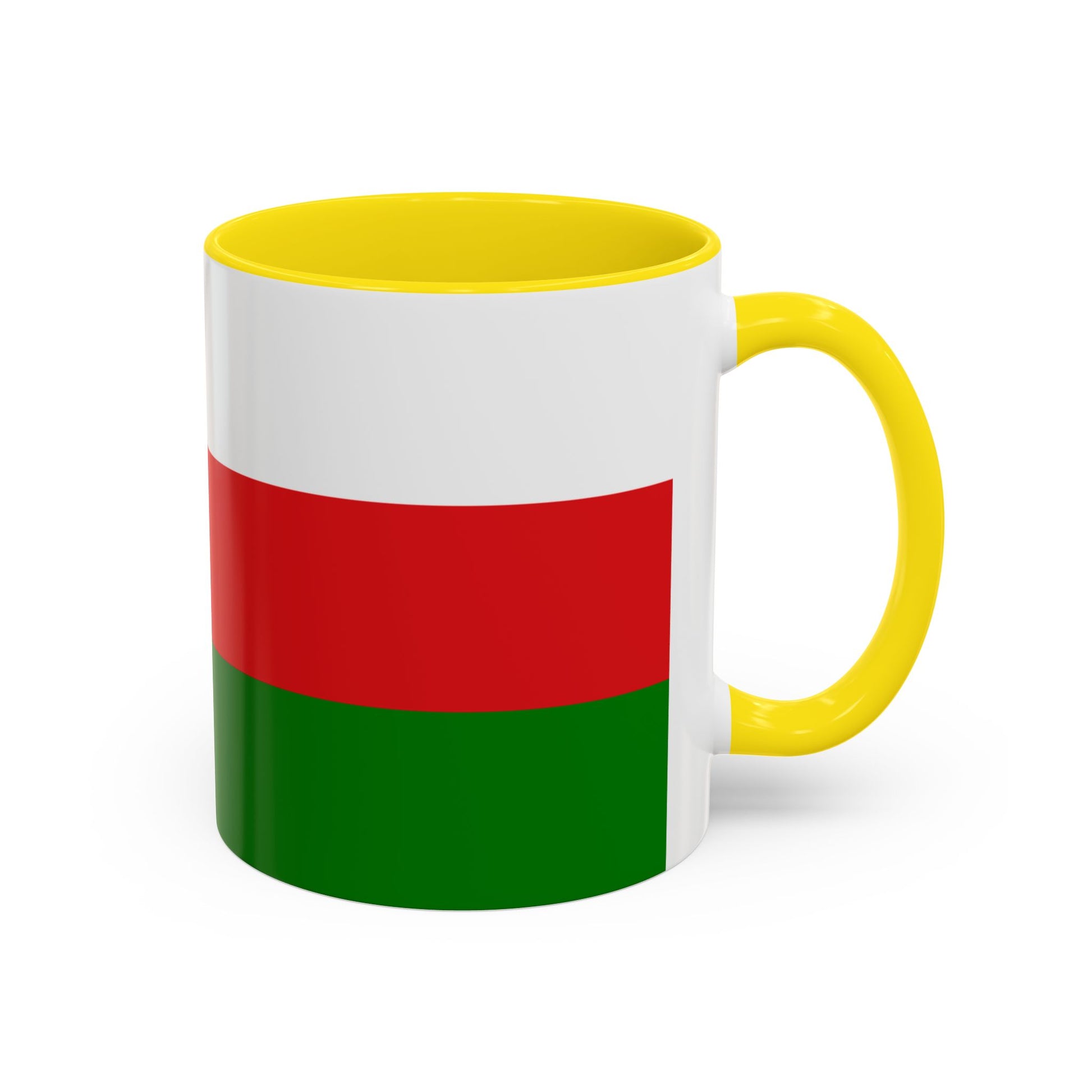 Start your day with a touch of Middle Eastern pride using the Oman Mug. Crafted from durable white ceramic with a glossy finish, this mug features the striking red, white, and green design of the Omani flag, blending cultural symbolism with practical everyday use. The colorful interior and handle add a stylish accent, while the ergonomic C-shaped handle ensures comfort with every sip of coffee, tea, or hot chocolate.