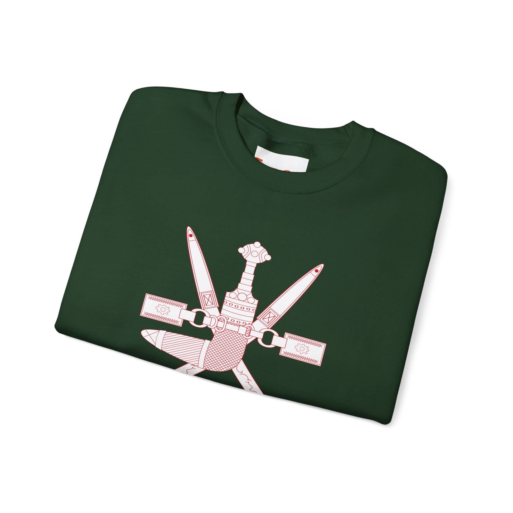 The Omani national emblem, featured on the flag and celebrated in this sweatshirt, includes a khanjar dagger in its sheath superimposed on two crossed swords. This symbol represents Oman’s rich history, strength, and tradition. It reflects the country’s pride, sovereignty, and cultural heritage, making the Oman Symbol Sweatshirt a meaningful way to honor Omani identity.