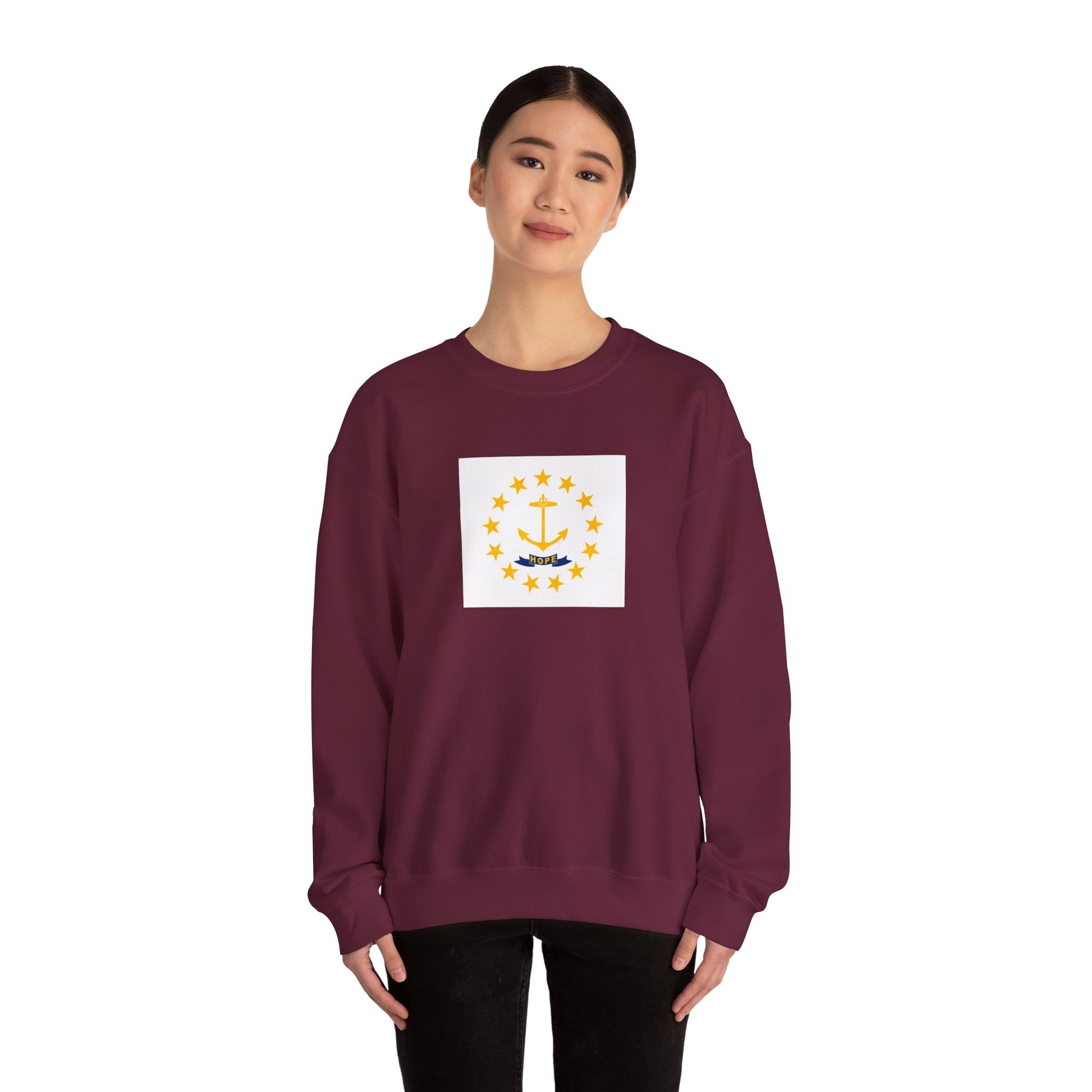 Showcase your Ocean State pride with this timeless Rhode Island Flag Sweatshirt. Featuring a design inspired by Rhode Island’s official state flag, this unisex crewneck is perfect for breezy coastal walks, casual gatherings, or cozy evenings at home.