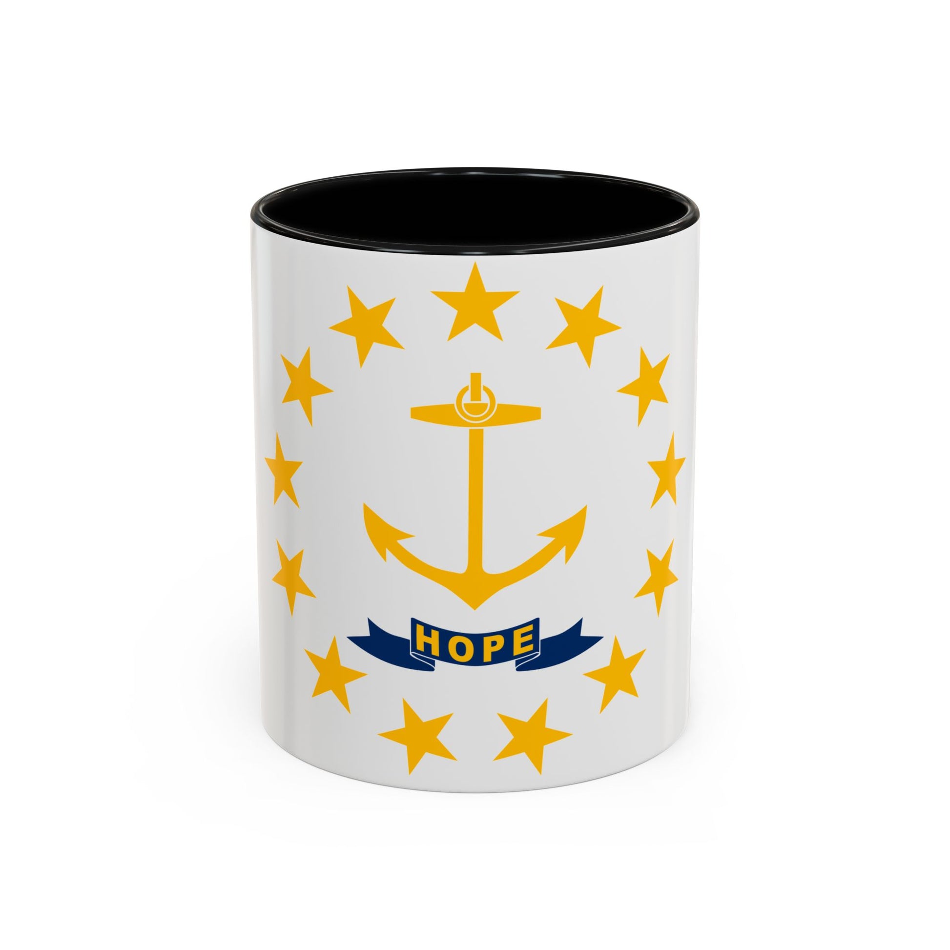 Start your day with Ocean State pride using the Rhode Island Mug. This ceramic mug features the Rhode Island state flag, displaying a white field with a gold anchor at its center, surrounded by thirteen gold stars. The word “Hope” appears above the anchor, symbolizing optimism and resilience. Every sip connects you to Rhode Island’s maritime history, spirit of independence, and enduring optimism.