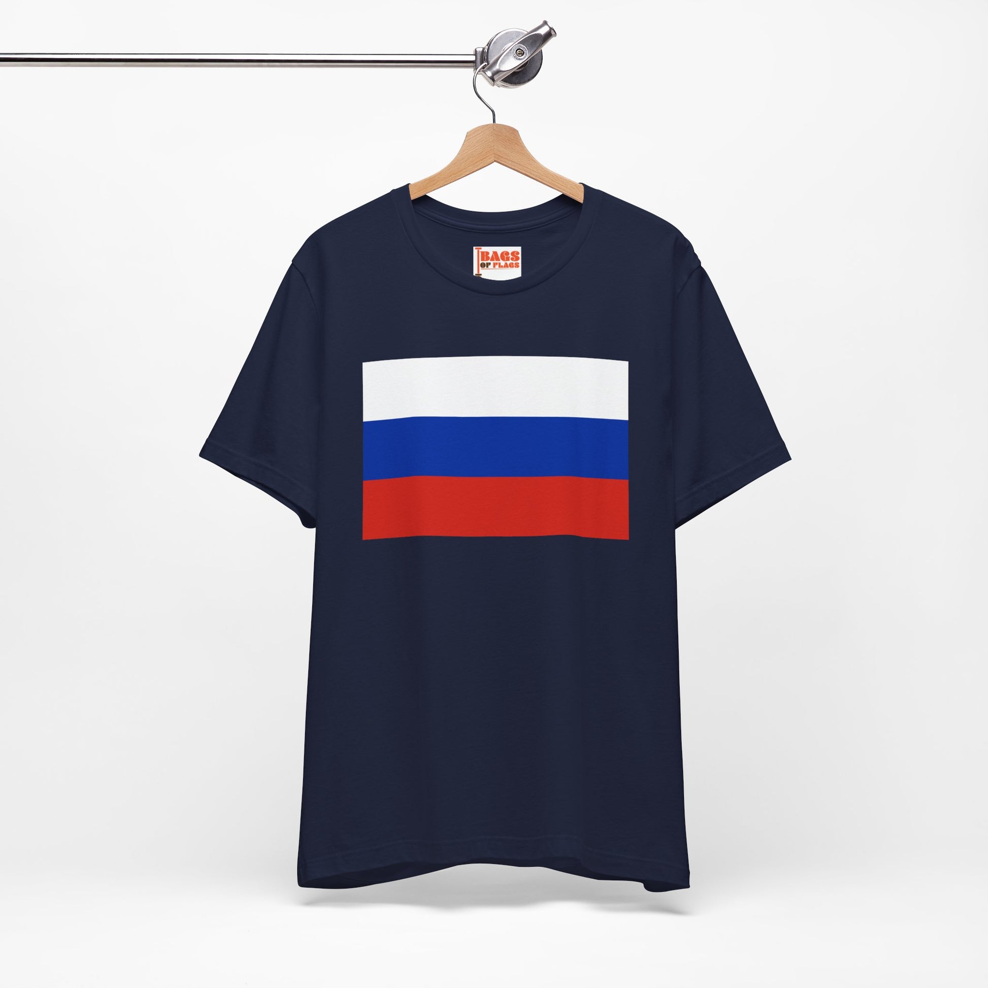 Celebrate Russia's striking tricolor with this Russia Flag T-shirt, featuring a clean and timeless design that captures the essence of national pride. The instantly recognizable white, blue, and red stripes are displayed with elegance—perfect for anyone who wants to represent Russia in a modern, stylish way.