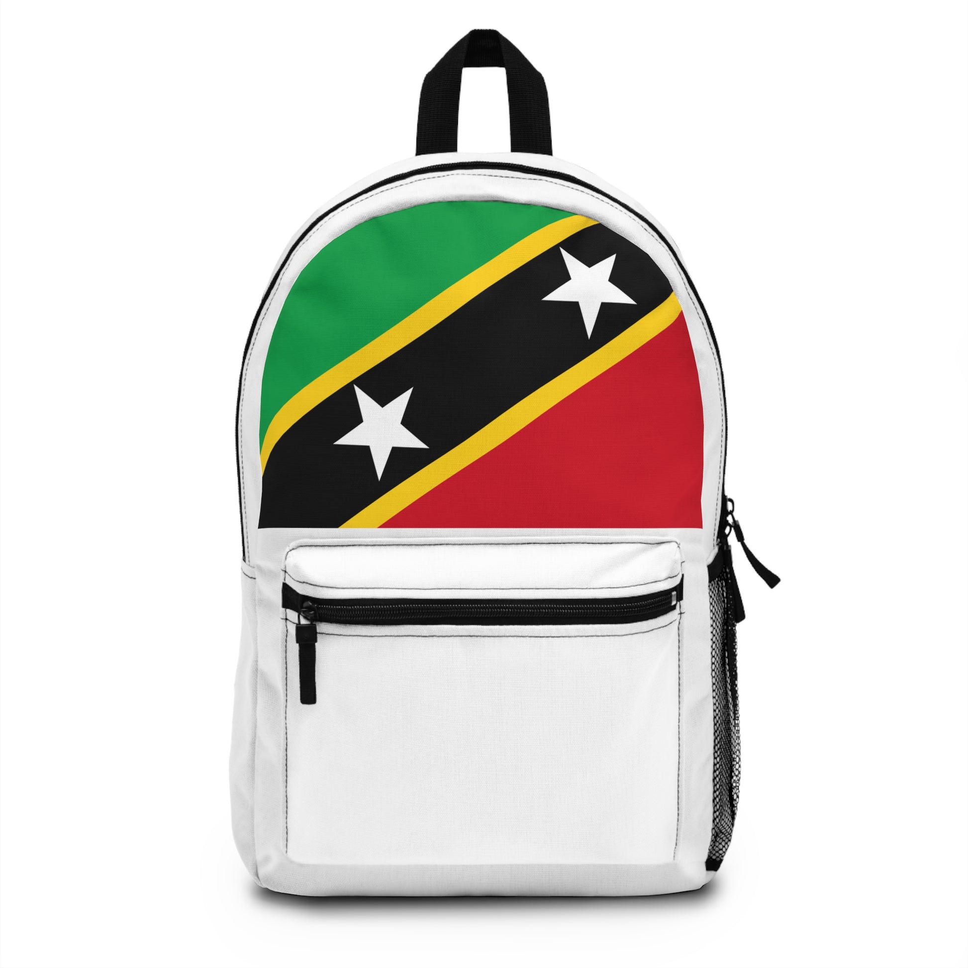 Carry Caribbean pride with the Saint Kitts and Nevis Backpack, featuring the green, yellow, black, red, and white diagonal design of the Saint Kitts and Nevis flag. Perfect for school, travel, work, or celebrating the vibrant heritage of the islands, this backpack blends bold style with practical functionality.