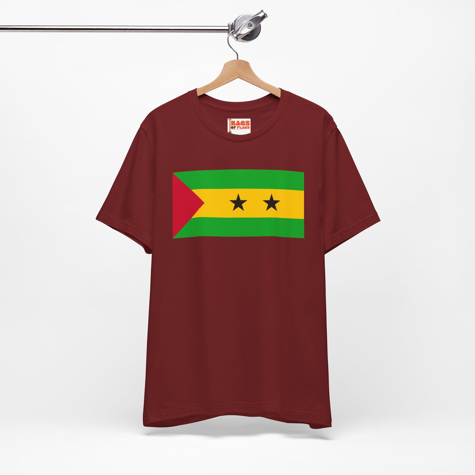 Celebrate the vibrant spirit of Sao Tome and Principe with this eye-catching Sao Tome and Principe Flag T-shirt. Featuring the nation’s striking red, green, yellow, and black design with the iconic two black stars, this shirt brings island pride front and center. Whether you’re from the islands or simply admire their rich culture, this tee is a perfect way to express your connection. Made with soft, breathable cotton, this T-shirt is built for comfort and durability, whether you’re enjoying a festival, a casual day out, or showing your heritage with pride.