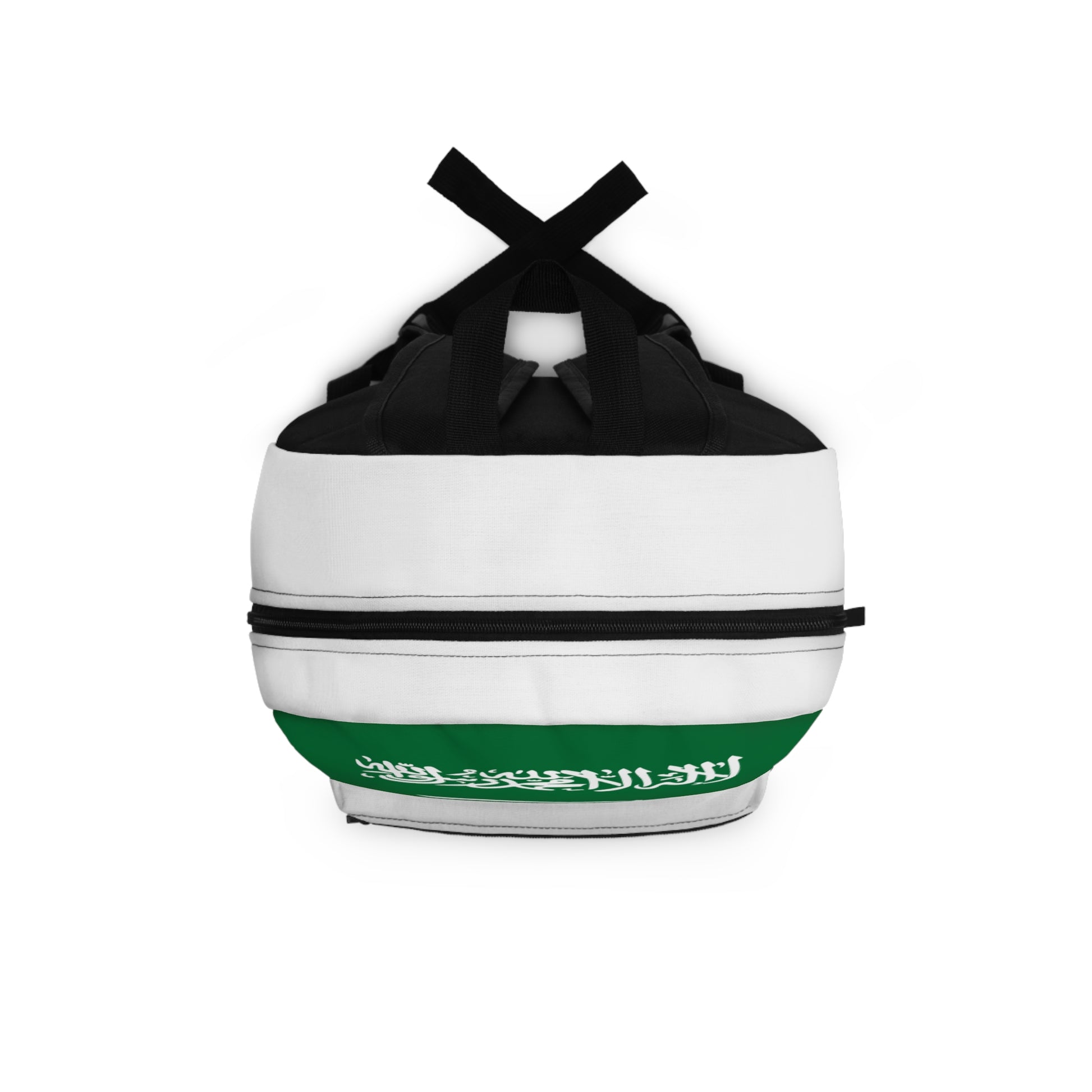 Show your Arabian pride with the Saudi Arabia Backpack, featuring the iconic green field with the white Arabic inscription and sword from the Saudi Arabian flag. Perfect for school, travel, work, or celebrating Saudi heritage, this backpack combines meaningful design with practical everyday use.