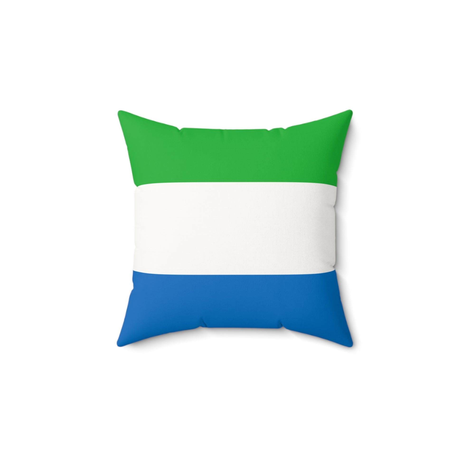 Bring the vibrant colors and cultural pride of West Africa into your home with the Sierra Leone Pillow. Featuring horizontal green, white, and blue stripes, this indoor accent piece blends symbolism with cozy comfort. Its soft polyester construction and single-sided print make the Sierra Leone flag pillow perfect for your sofa, bed, or reading nook, adding color, personality, and a meaningful touch to your décor.