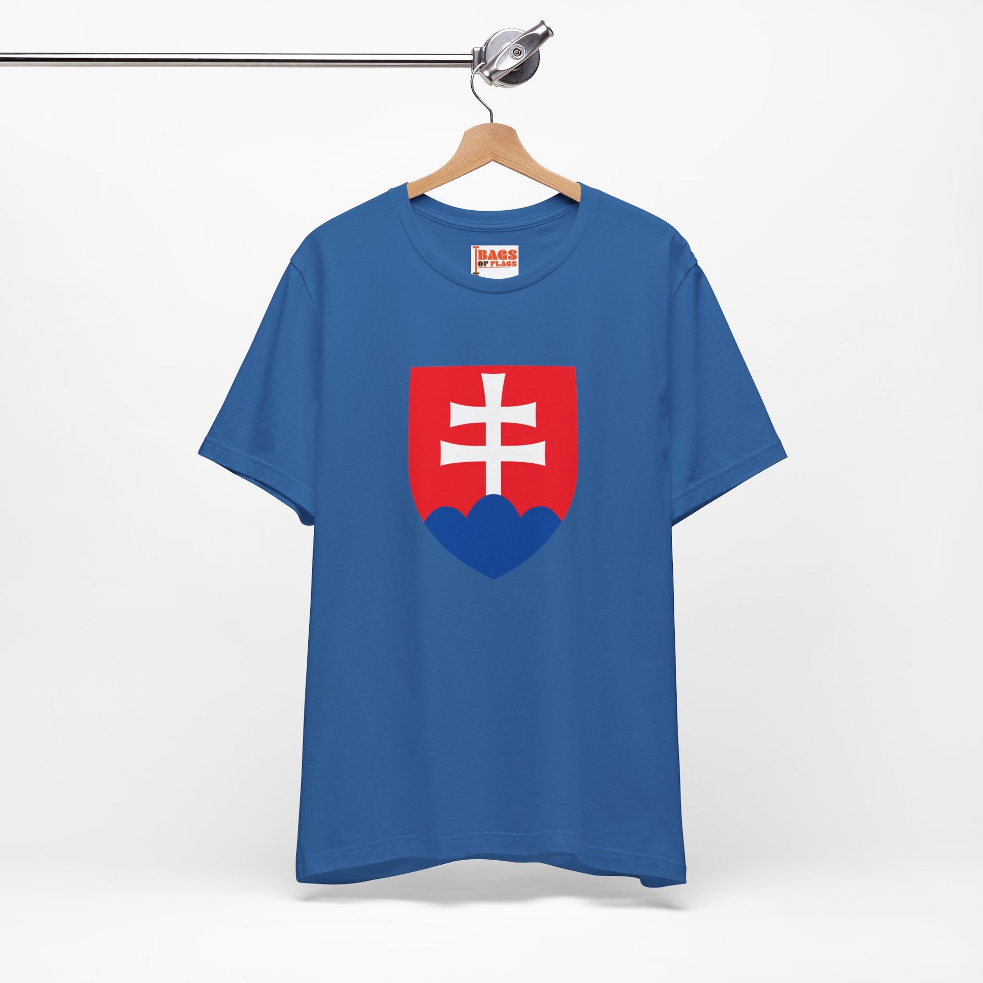 This shirt may feature graphic elements inspired by the Slovak coat of arms, the Tatra Mountains, or the red, blue, and white of the national flag. It’s a creative interpretation of national identity—less literal, more expressive—perfect for modern wearers with strong cultural ties.