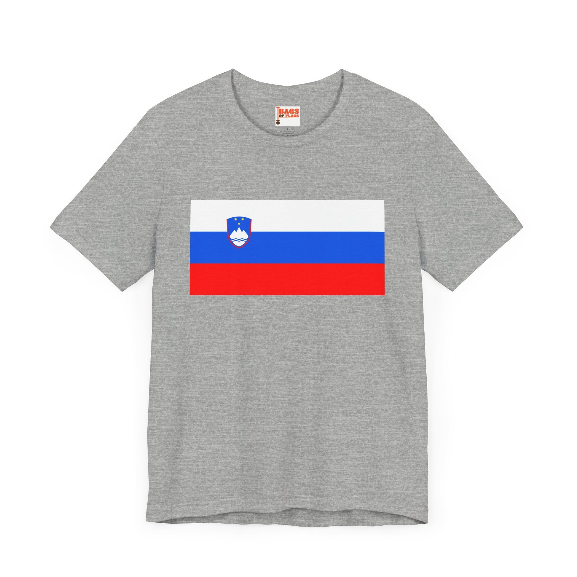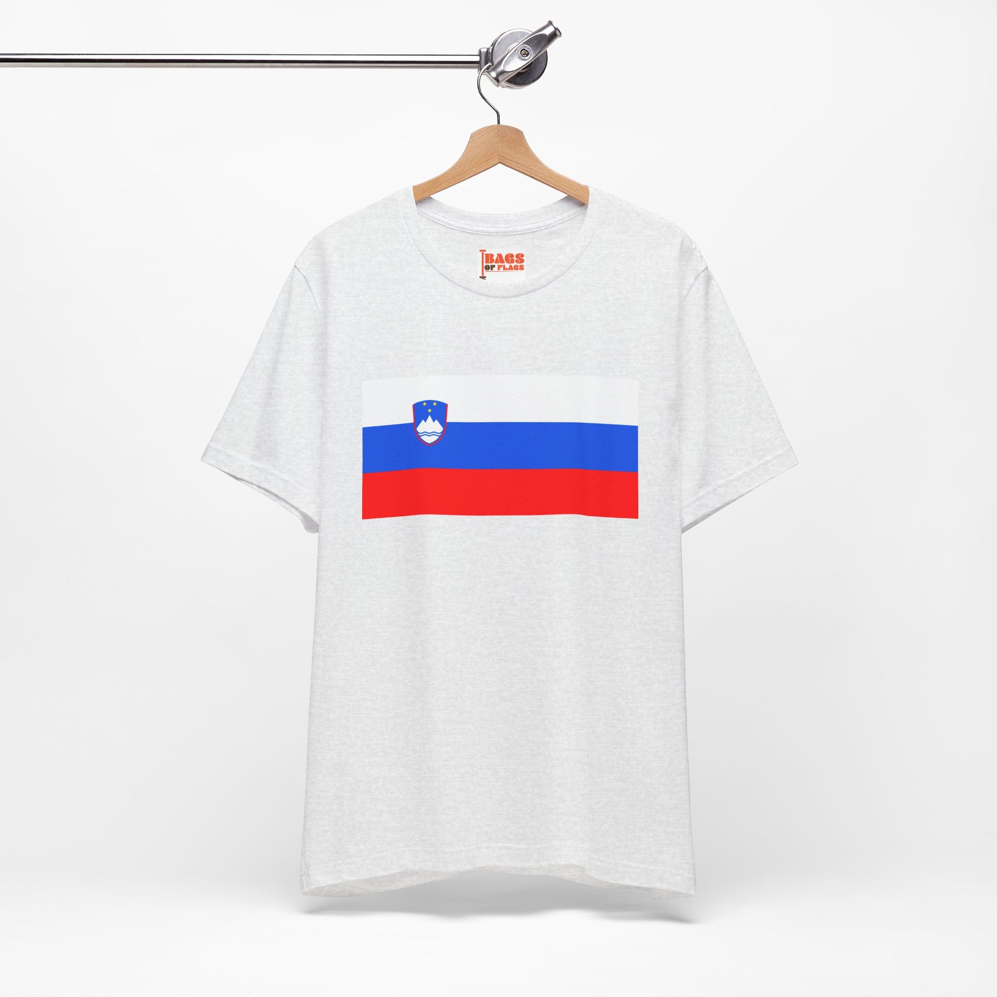 The shirt features a smooth, premium cotton surface that brings the Slovenian flag to life with crisp color and clarity. Made from 100% US-grown cotton and cut in a classic unisex fit, it's perfect for daily wear, events, or sharing your pride in subtle style. No side seams means no annoying rubbing, and the tear-away label makes it itch-free from top to bottom.