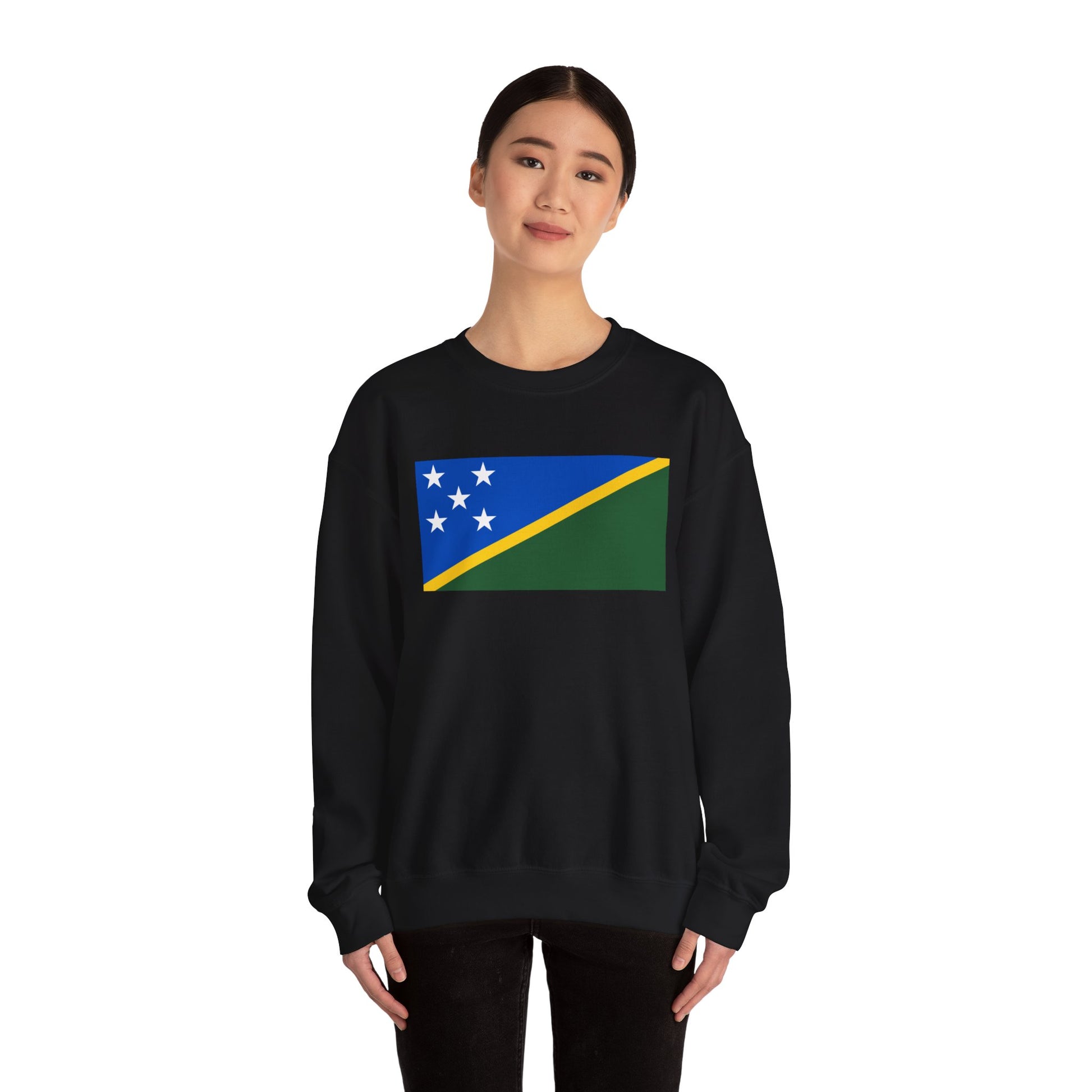 Show your pride for the Pacific nation with the Solomon Islands Flag Sweatshirt, a unisex crewneck that combines comfort, durability, and national symbolism. Perfect for casual wear, cultural events, or celebrating the Solomon Islands, this sweatshirt features the flag’s blue, green, and yellow diagonal design with five white stars.