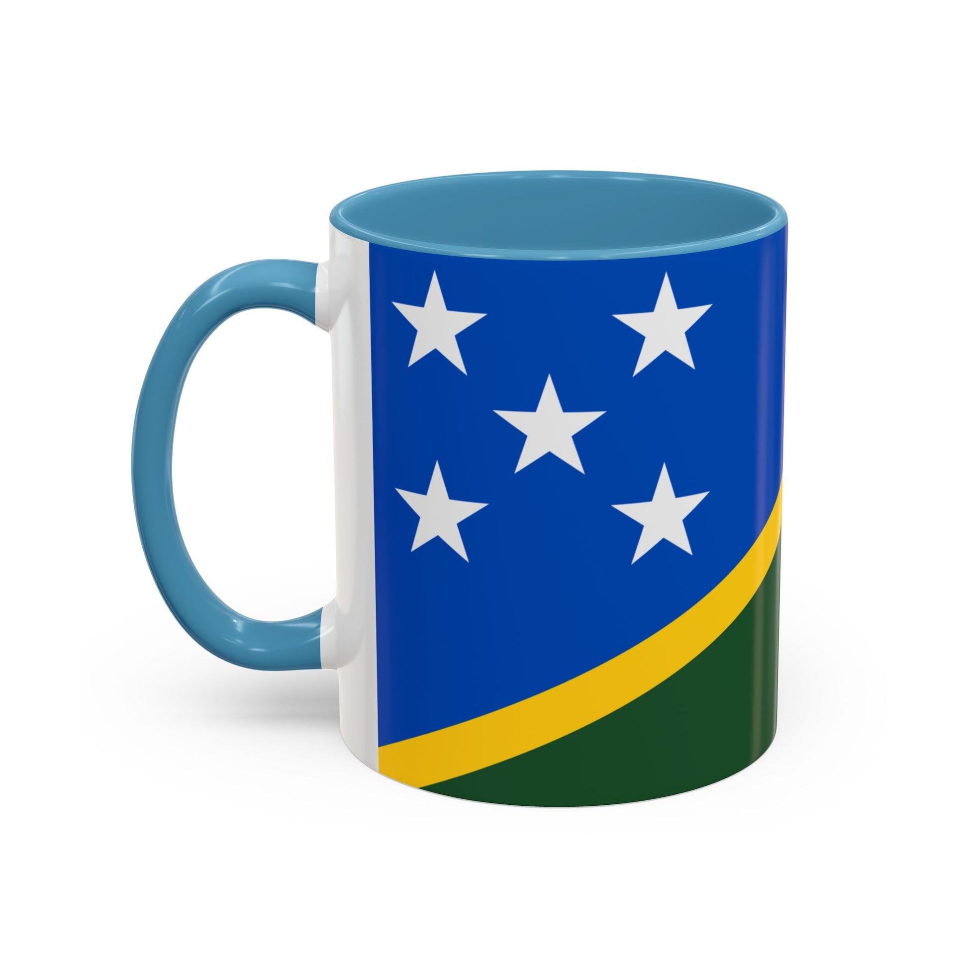 Bring a splash of Pacific pride to your daily routine with the Solomon Islands Mug. Made from durable white ceramic with a glossy finish, this mug showcases the vibrant blue, green, yellow, and white design of the Solomon Islands flag. The accented handle and interior add a modern touch, while the ergonomic C-shaped grip ensures comfort with every sip of coffee, tea, or hot chocolate.