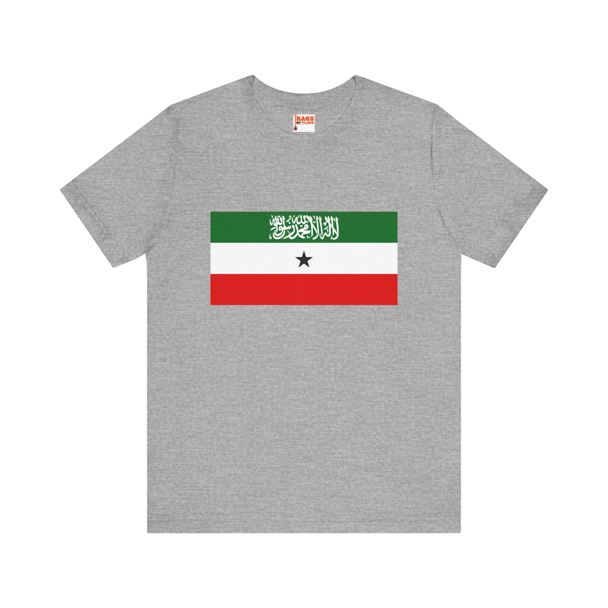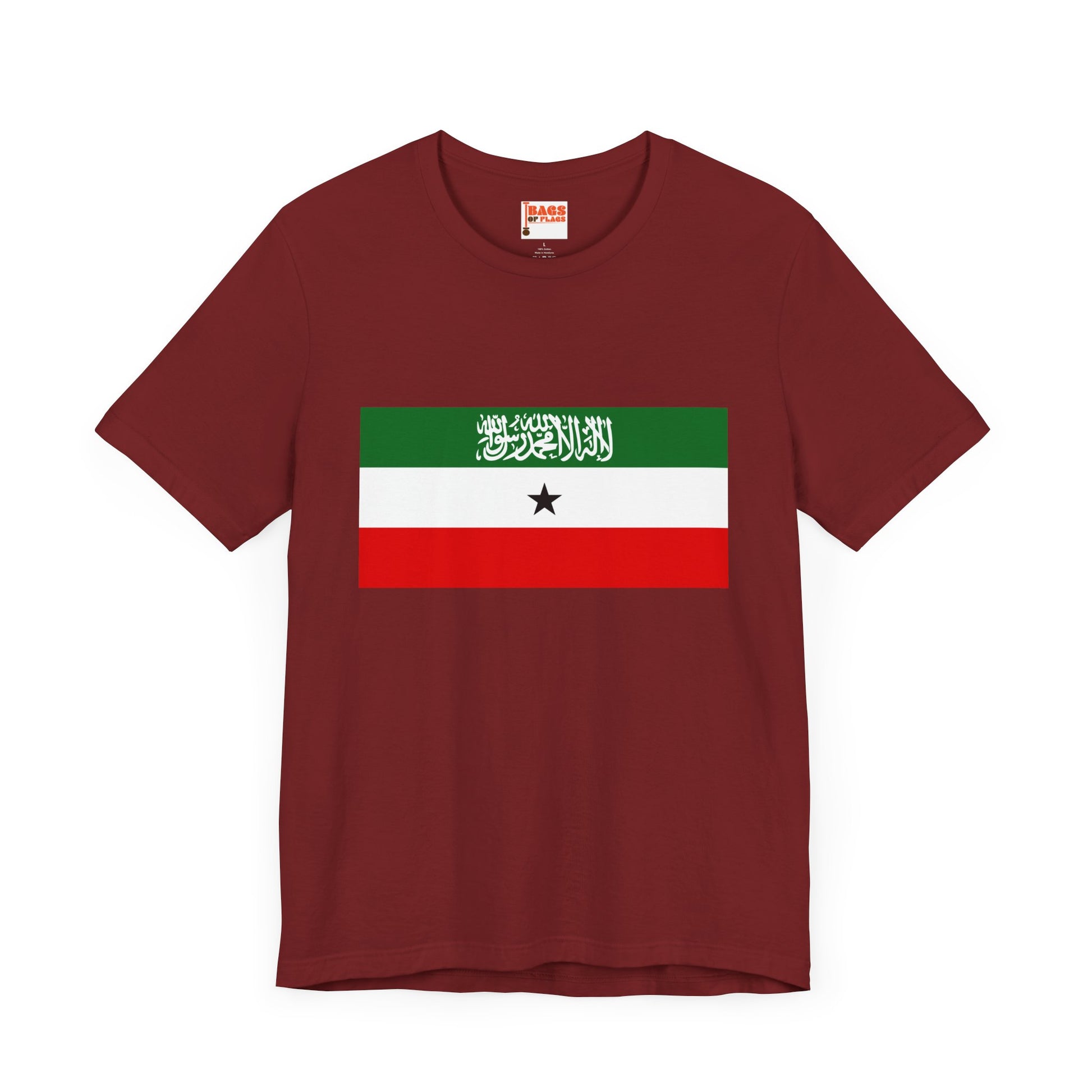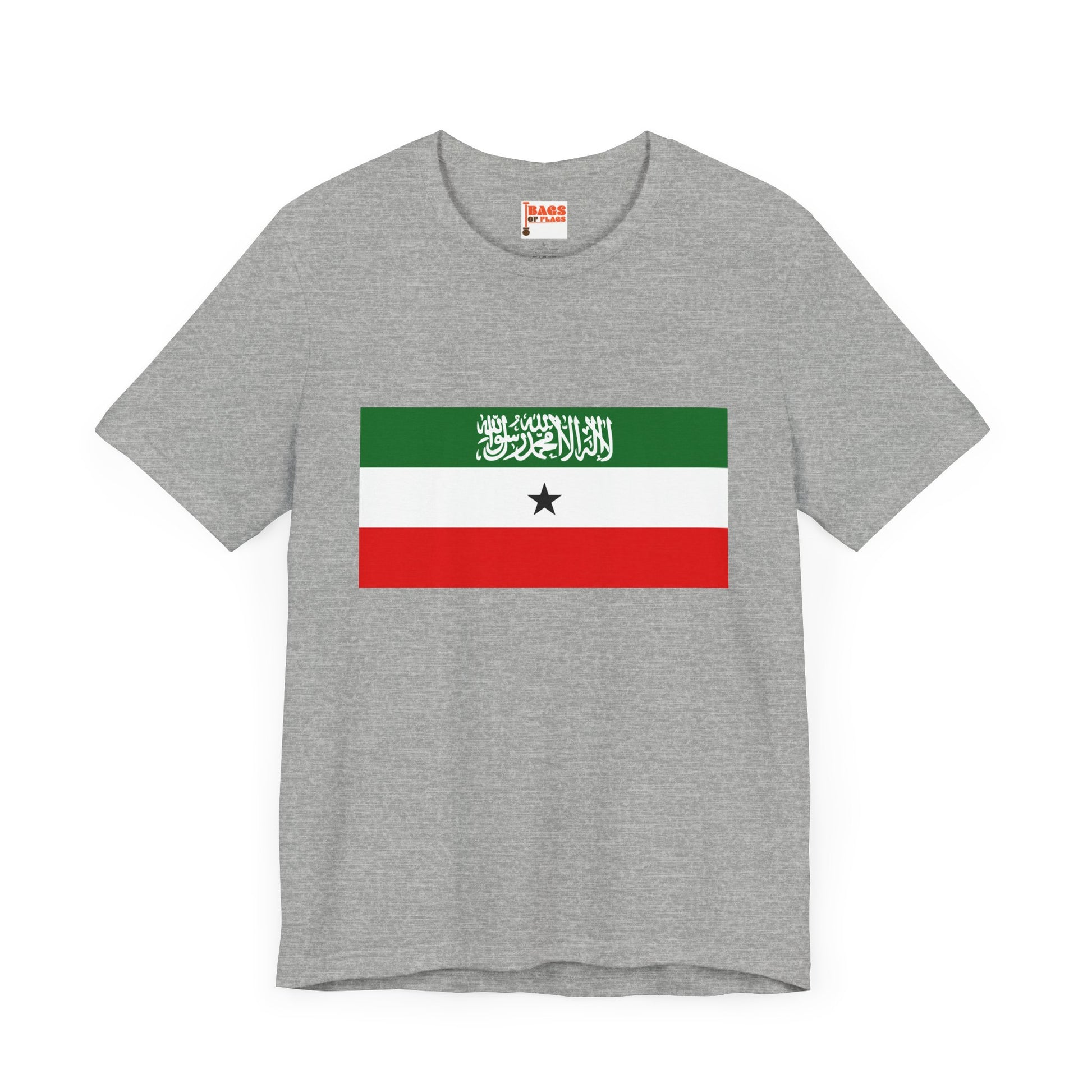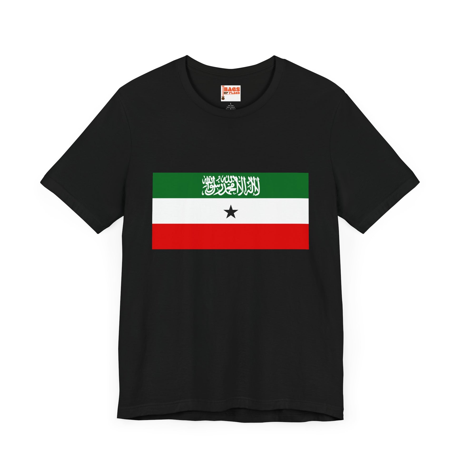 Show your pride with the bold and meaningful Somaliland Flag T-shirt, featuring the distinctive colors and symbols of the self-declared Republic of Somaliland. This tee captures the essence of Somaliland’s unique identity with its striking green, white, and red horizontal stripes, the black star, and the Shahada script—each element telling a story of heritage, faith, and independence.