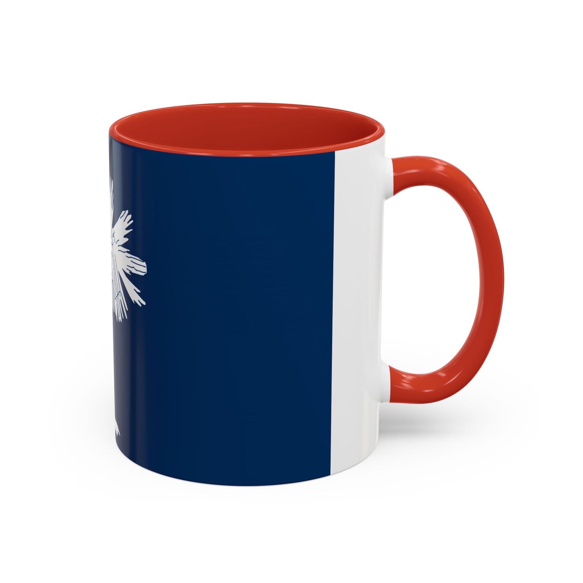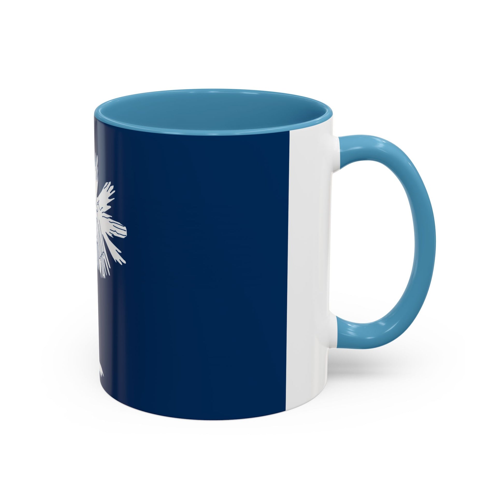 Sip with Palmetto State pride using the South Carolina Mug. This ceramic mug features the South Carolina state flag, displaying a white palmetto tree and crescent on a deep indigo background. The design reflects the state’s Revolutionary War history and the iconic fortifications made from palmetto logs, symbolizing resilience, strength, and Southern heritage.