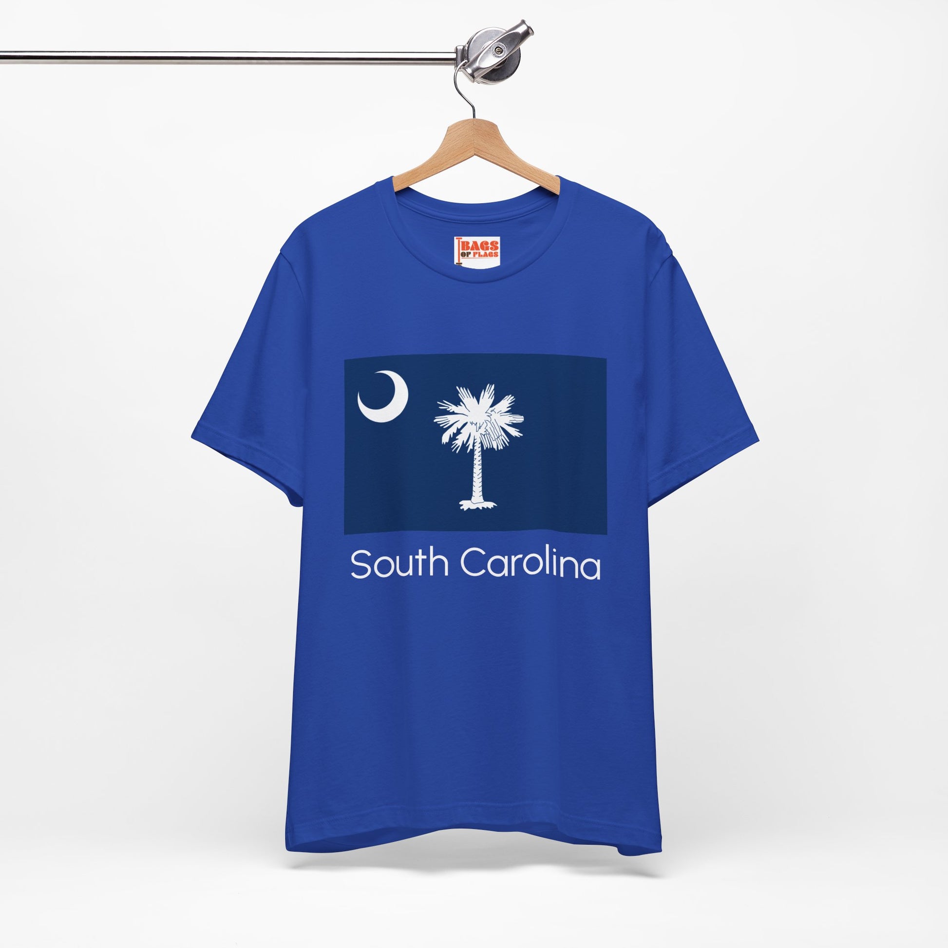 The South Carolina T-shirt is crafted for long-lasting comfort. Specially spun fibers provide a smooth surface for crisp, vibrant printing. Its classic fit and crew neckline offer timeless style, while no side seams ensure itch-free wear and reinforced shoulders add extra durability for everyday use.