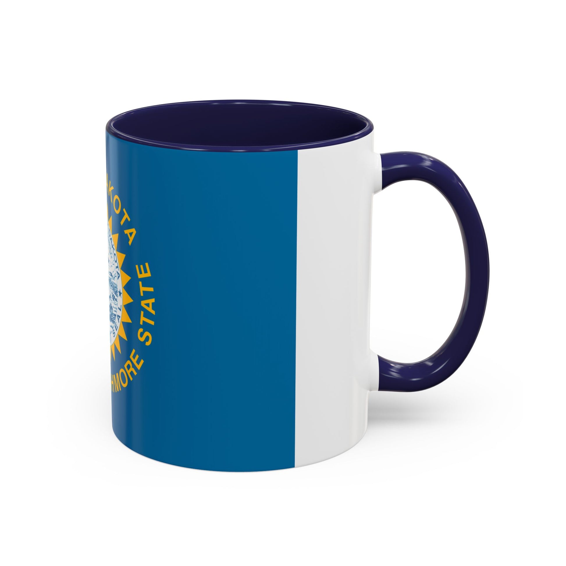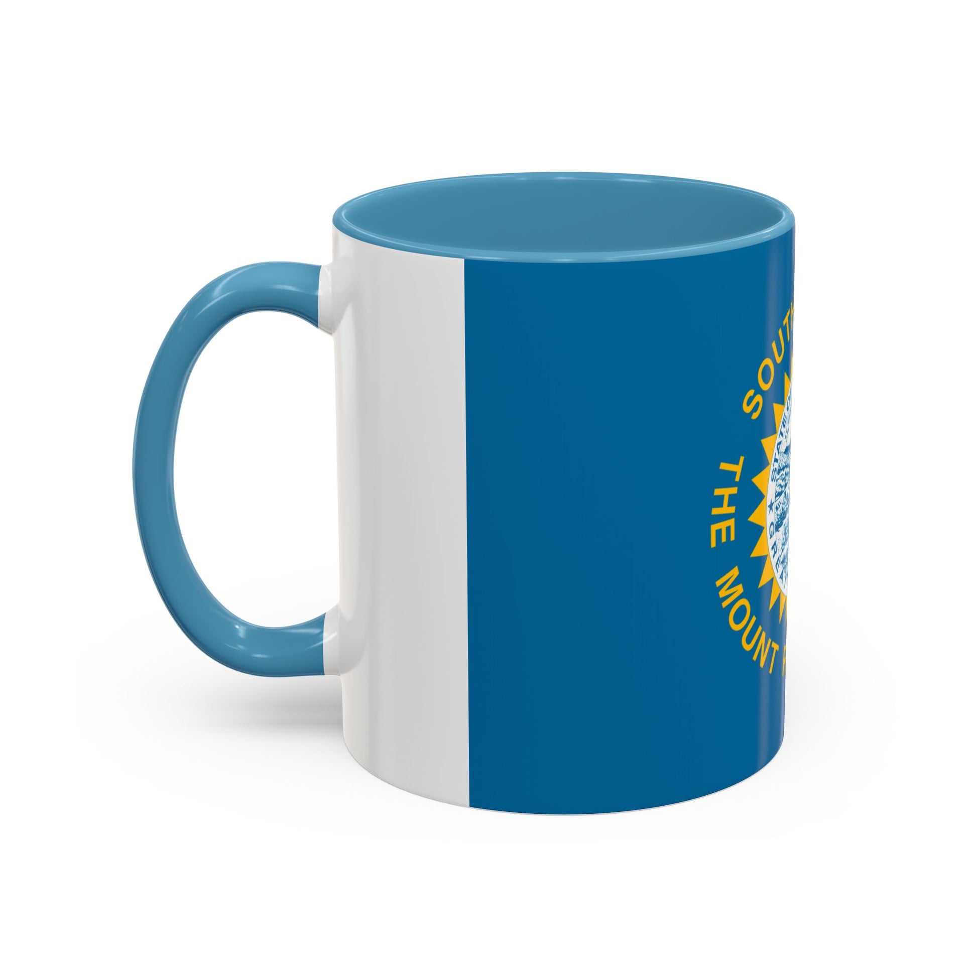 Start your day with Mount Rushmore State pride using the South Dakota Mug. This ceramic mug features the South Dakota state flag, showcasing the state seal surrounded by a golden sun on a vibrant sky-blue field. The seal depicts a farmer, a riverboat, and a mountain landscape, symbolizing agriculture, commerce, and natural beauty. Every sip reflects the state’s rich heritage and commitment to progress.